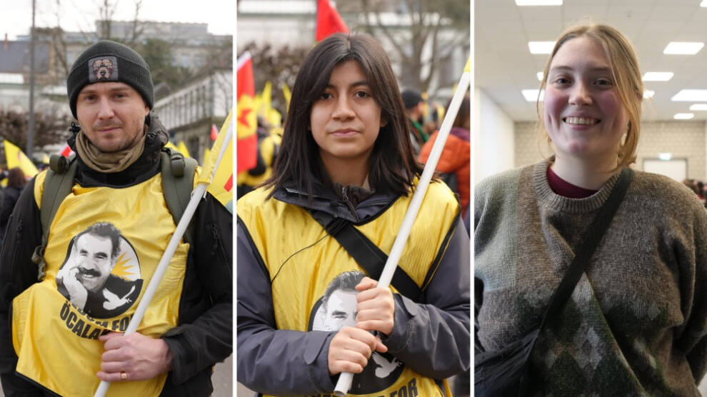 Fransa’nın Bordeaux kentinden yürüyüşe katılan üniversite öğrencisi Dereck Crouz özgürlük yürüyüşünde olmasını şu cümlelerle açıklıyor: “Bugün buradayım çünkü Abdullah Öcalan’a özgürlük istiyorum. Burada olmamın temel amacı Kürt özgürlük mücadelesi ve Önder Apo’nun kadın-erkek eşitliğini merkezine koyan ideolojiyi desteklemek ve onun duyulmasını sağlamaktır”.