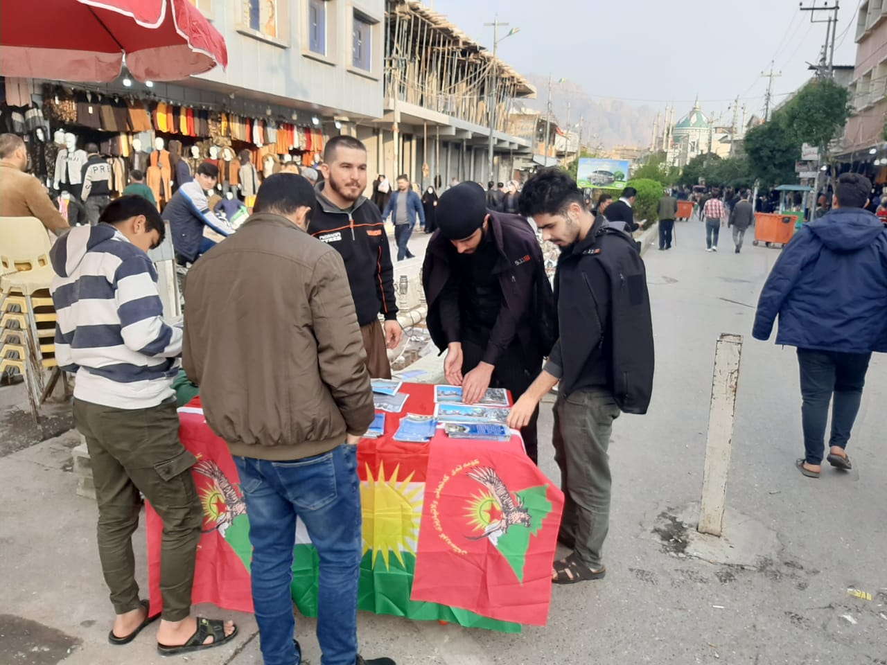 KDP'nin ihanetçi tutumu ve saldırılarına karşı Başûrê Kürdistan gençliği stand açarak broşür dağıttı.