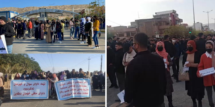 SILÊMANÎ – Güney Kürdistan’da üniversite öğrencileri bir kez daha sokaklara çıkarak haklarını talep etti. Öğrenciler talepleri karşılanana kadar eylemlerine devam edeceklerini belirtti.