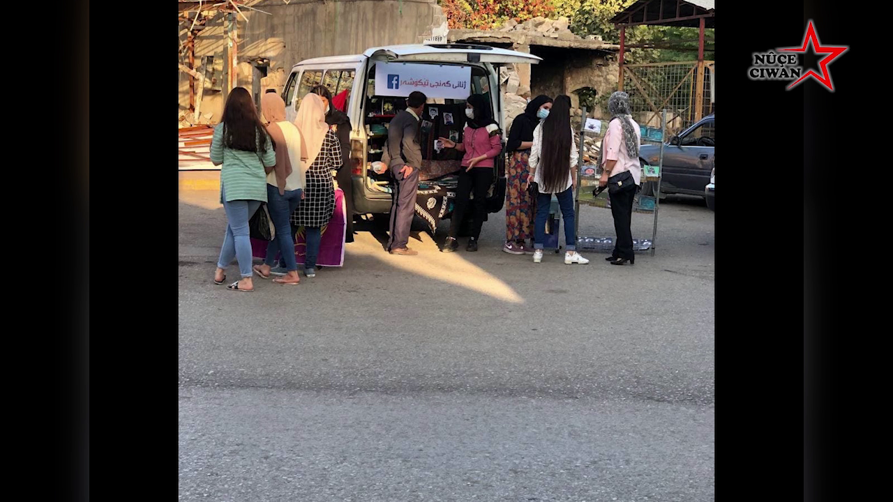 SİLÊMANÎ – Başûrê Kürdistan’da genç kadınlar tecride karşı ve Önder Apo’nun ideolojisini yaymak için protesto ediyor. Jinen Gencanî Tekoşan, Halepçe’de ‘Önder Apo Gezici Kütüphanesi’ isimli gezici kütüphane açarak Önder APO’nun ideolojisini tanıtmak için yaratıcı bir etkinlik düzenledi.