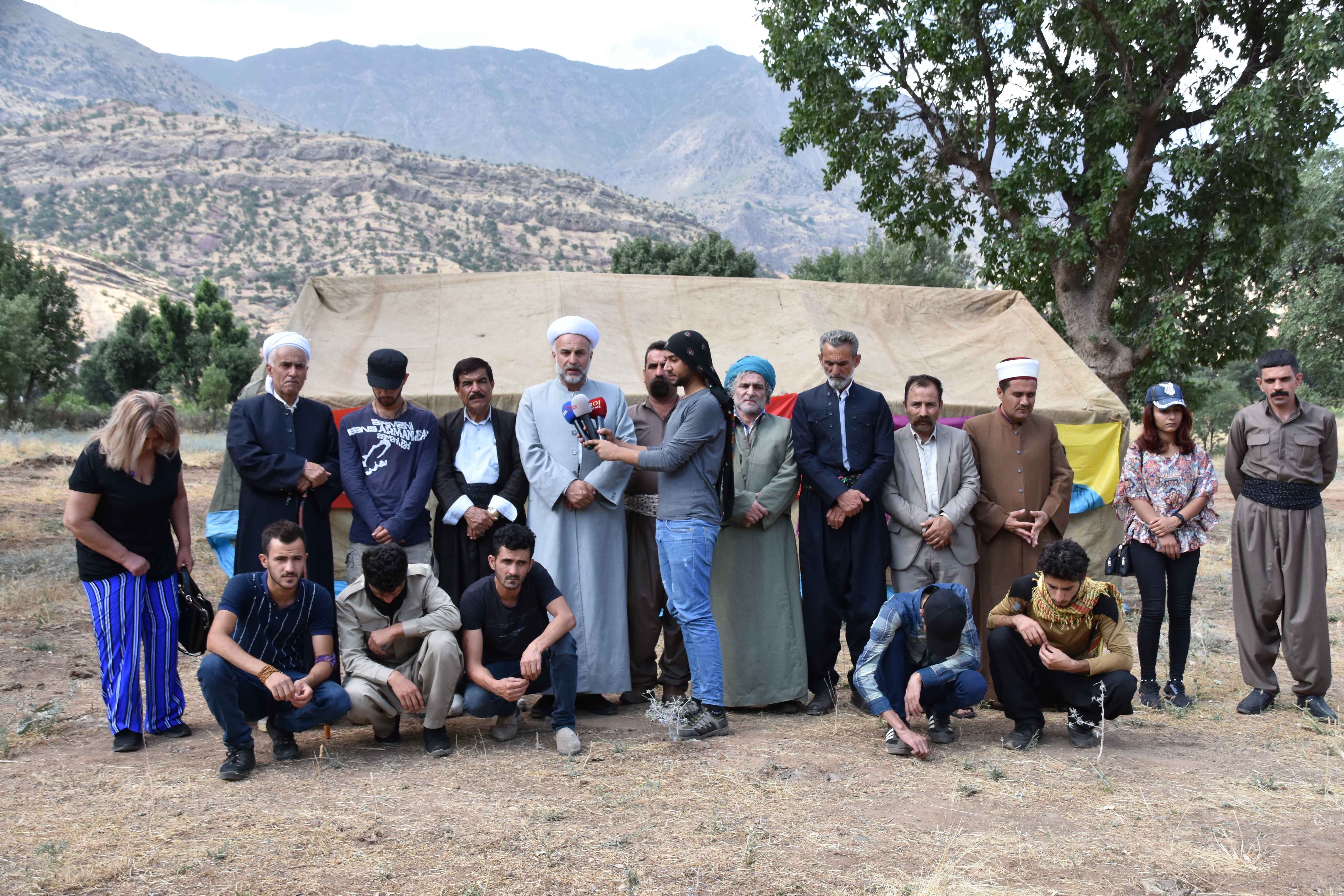 QENDÎL- Gençlerin işgalci Türk devletinin işgal saldırılarına karşı başlatmış oldukları canlı kalkan eylemi 5’inci günde devam ediyor. Bu günde gençlerin eylemini Zerdeşti, Kakayî ve Nakşibendi tarikatına bağlı din insanları ziyaret etti. Ziyarette konuşan Mele Nadîr şunları dile getirdi: ” Din insanları olarak bu gün buraya gençlerin eylemini ziyaret ettik. Türk devleti sadece Türkiye’de değil Başurê Kürdistan’da Kürtlere zulüm etmektedir. Din insanları olarak bunu kınıyoruz. Bu saldırılara karşı da herkesi karşı çıkmaya davet ediyoruz.”