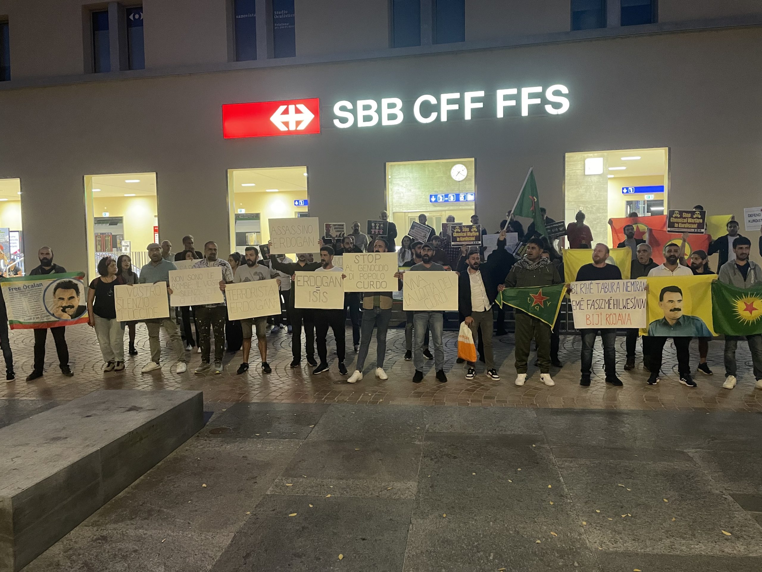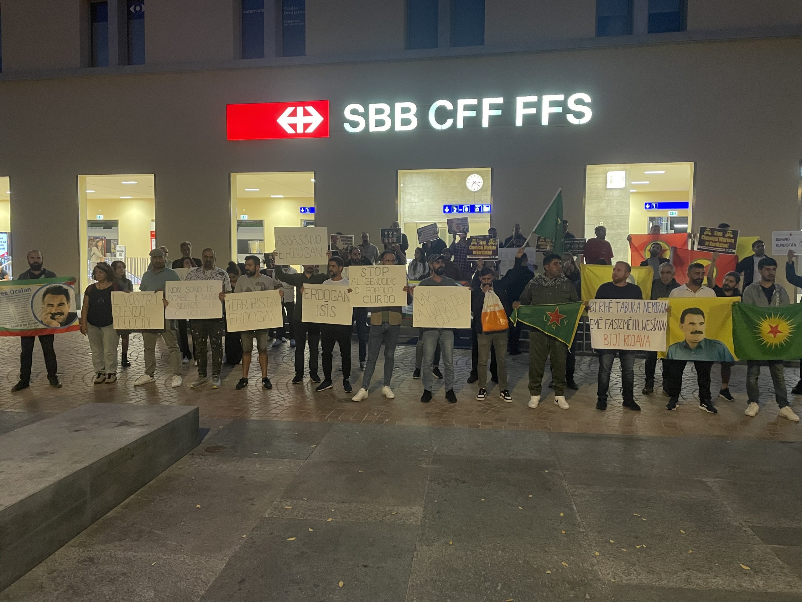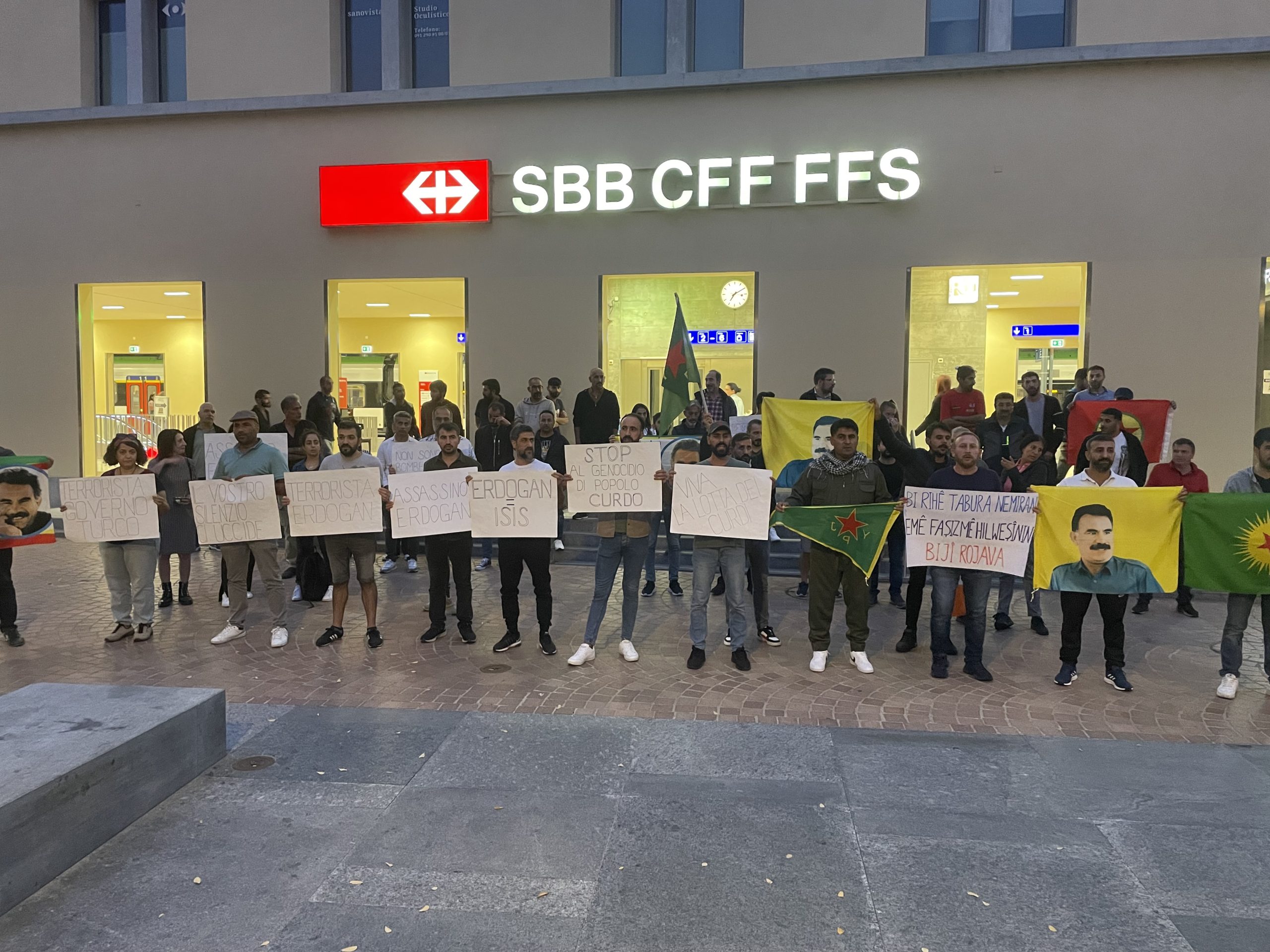 BELLIZONA – Eylem Ankara’da fedai eylemi gerçekleştiren Şehit Erdal ve Şehit Rojhat şahsında tüm Kurdistan şehitleri için bir dakikalık saygı duruşu ile başladı. Daha sonrasında Rojava marşı okuyan eylemciler İtalyanca bir basın açıklaması gerçekleştirdiler.