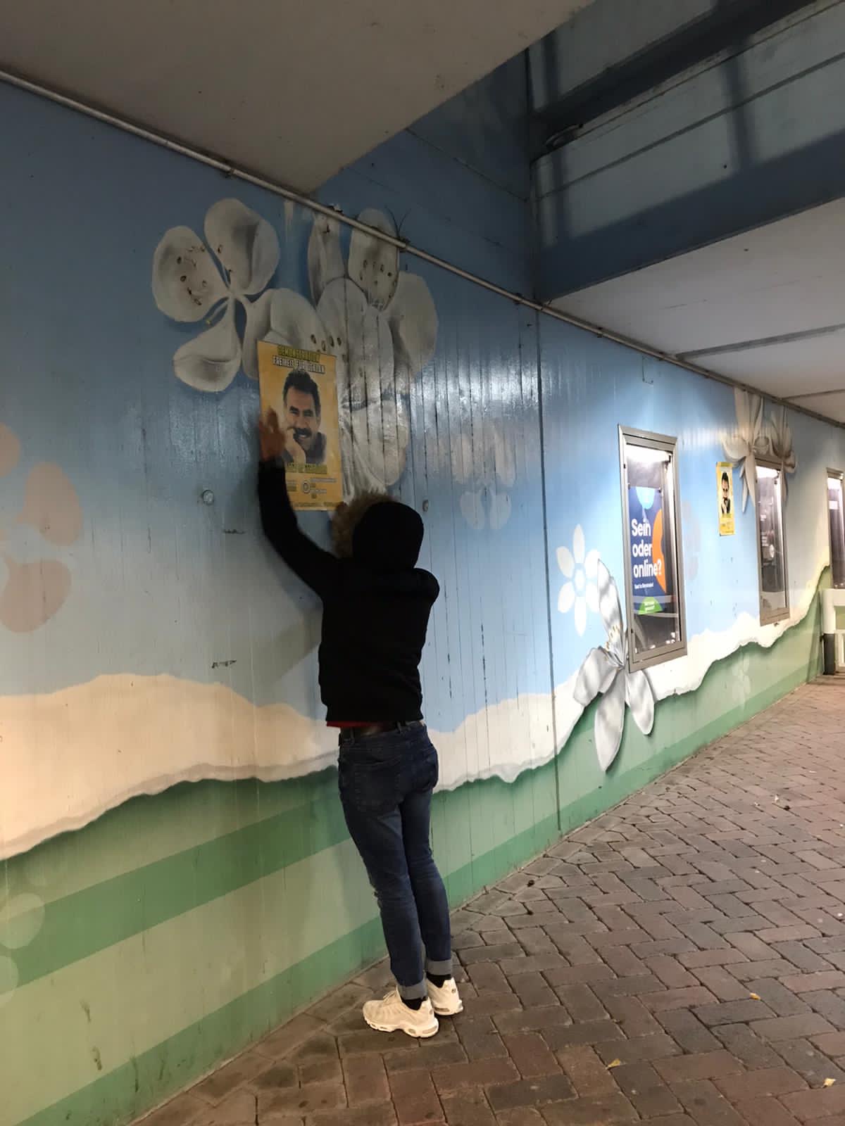 Tevgera Ciwanên Şoreşger Bensheim aktivisti gençler, 5 Aralık’ta Almanya’nın Stuttgart kentinde düzenlenecek yürüyüş öncesi afişleme çalışması gerçekleştirdi.