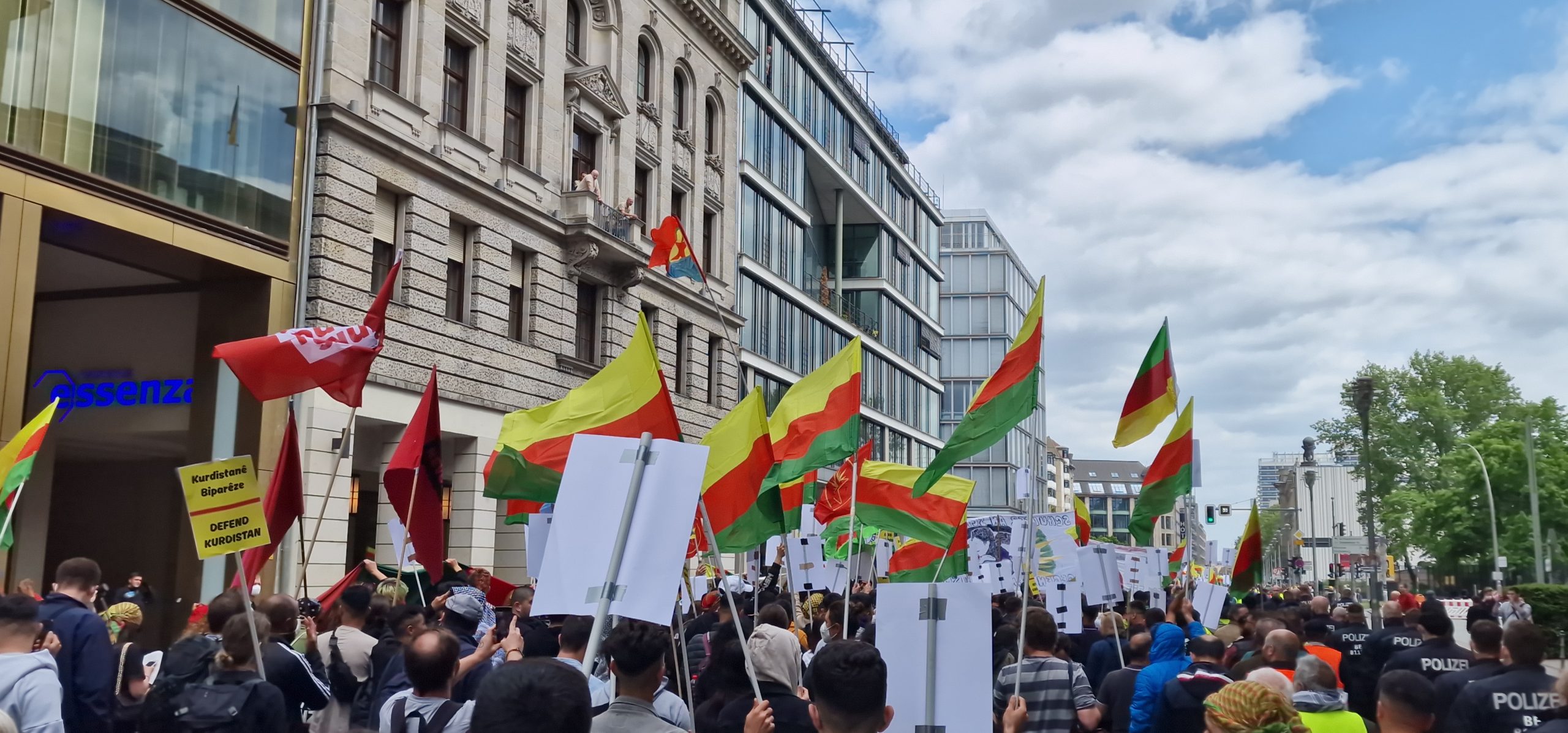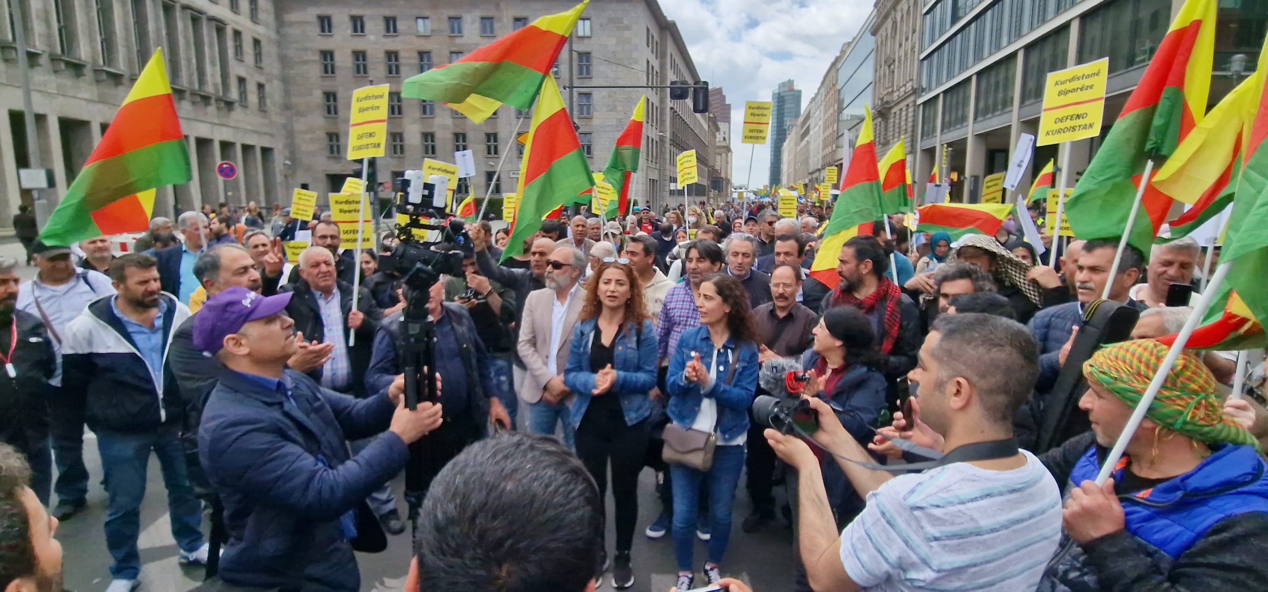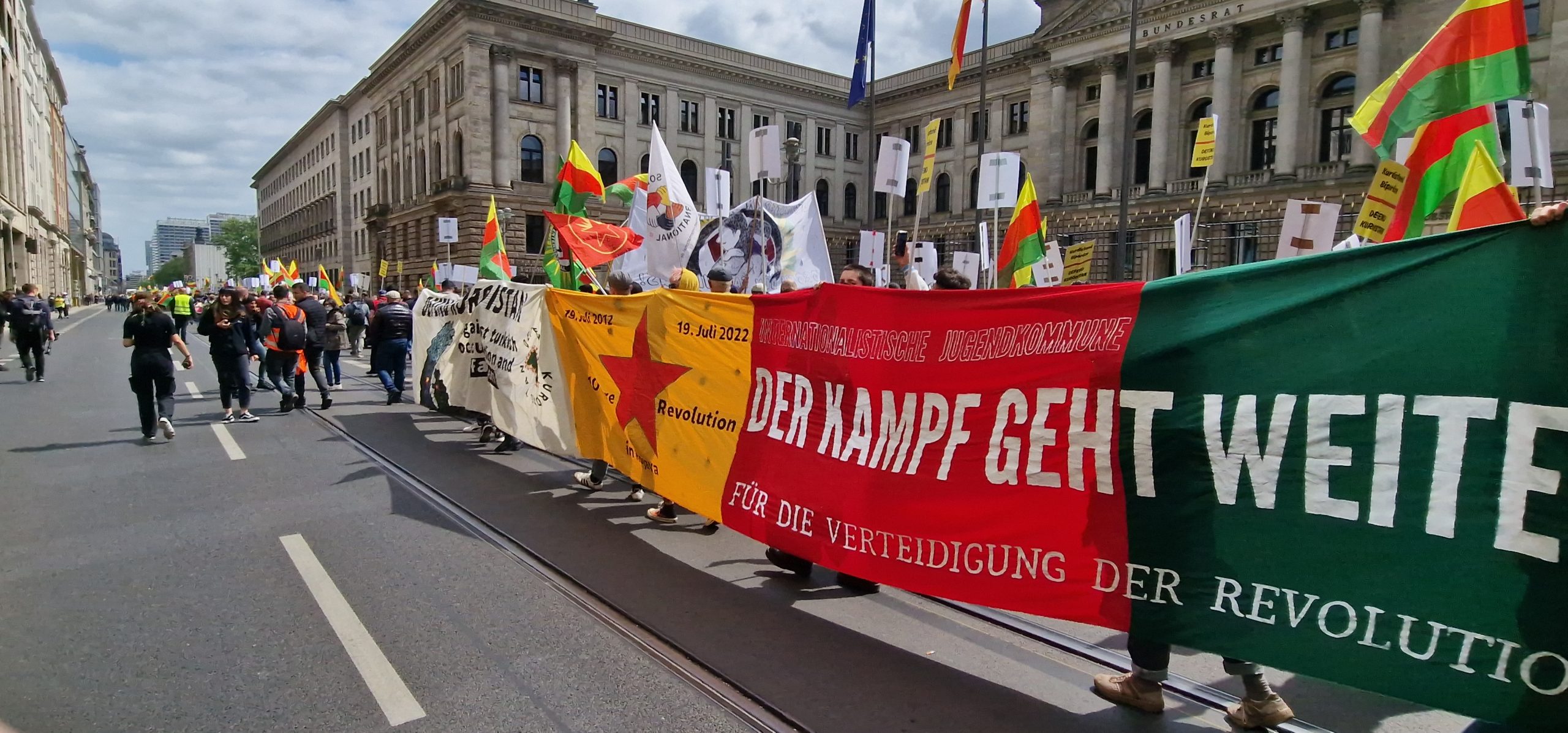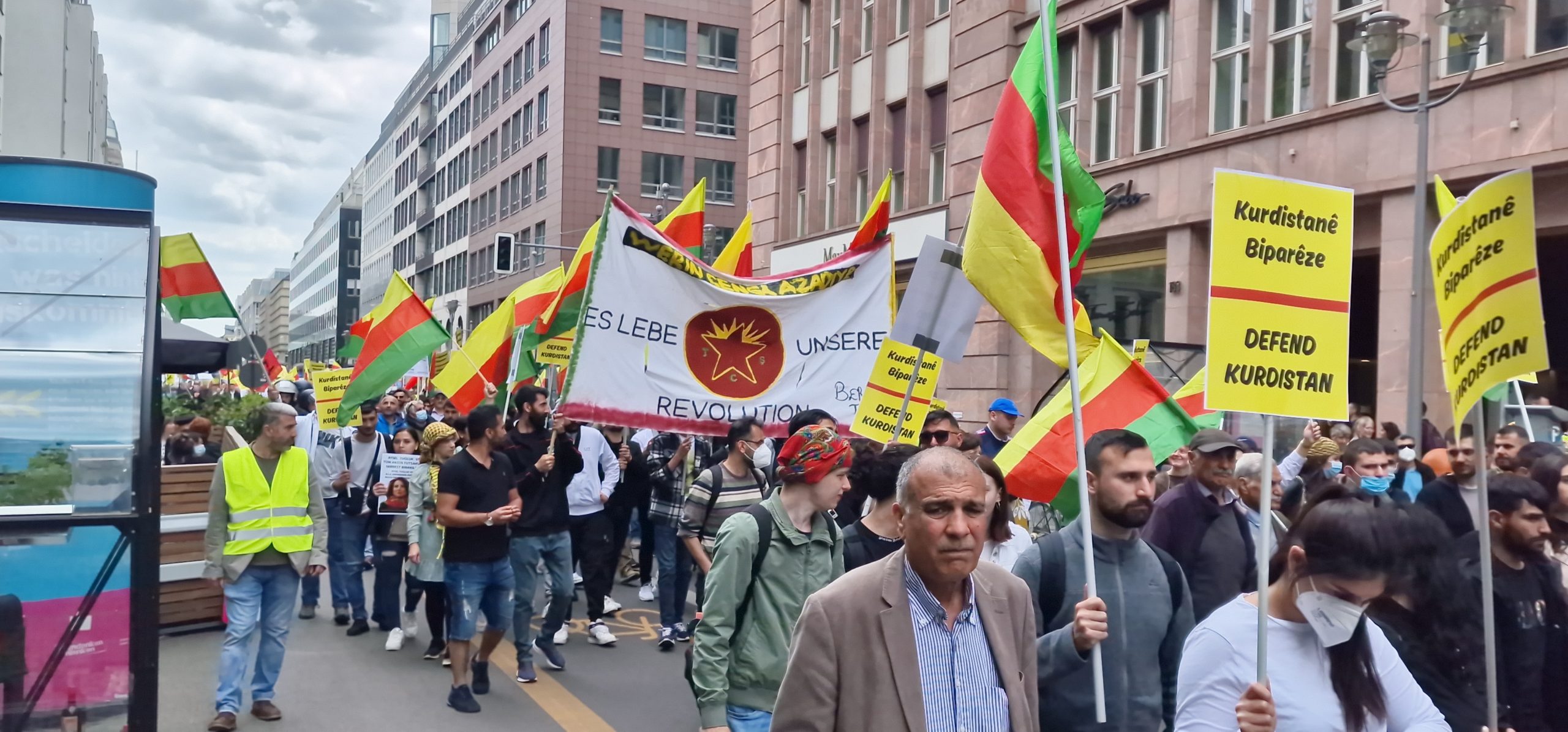 BERLİN – Almanya’nın başkenti Berlin, bugün Türk devletinin KDP işbirliğinde 17 Nisan 2022’de Güney Kürdistan’a dönük başlattığı işgal saldırısını kınama amacıyla gerçekleşen kitlesel bir gösteriye ev sahipliği yaptı. Sabah saatlerinden itibaren Almanya’nın birçok eyalet ve kentinden Kürdistanlılar ile dostlarının katılımıyla öğlen saatlerinde başlayan yürüyüş renkli görüntülere sahne oldu.