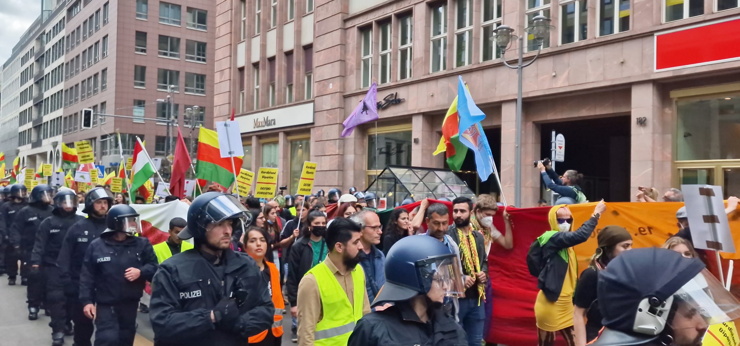 Alman polisinin provokasyon ve saldırılarına rağmen Berlin’de buluşan binlerce Kürdistanlı, Türk devletinin işgali ve KDP’nin ihanetini kınadı.