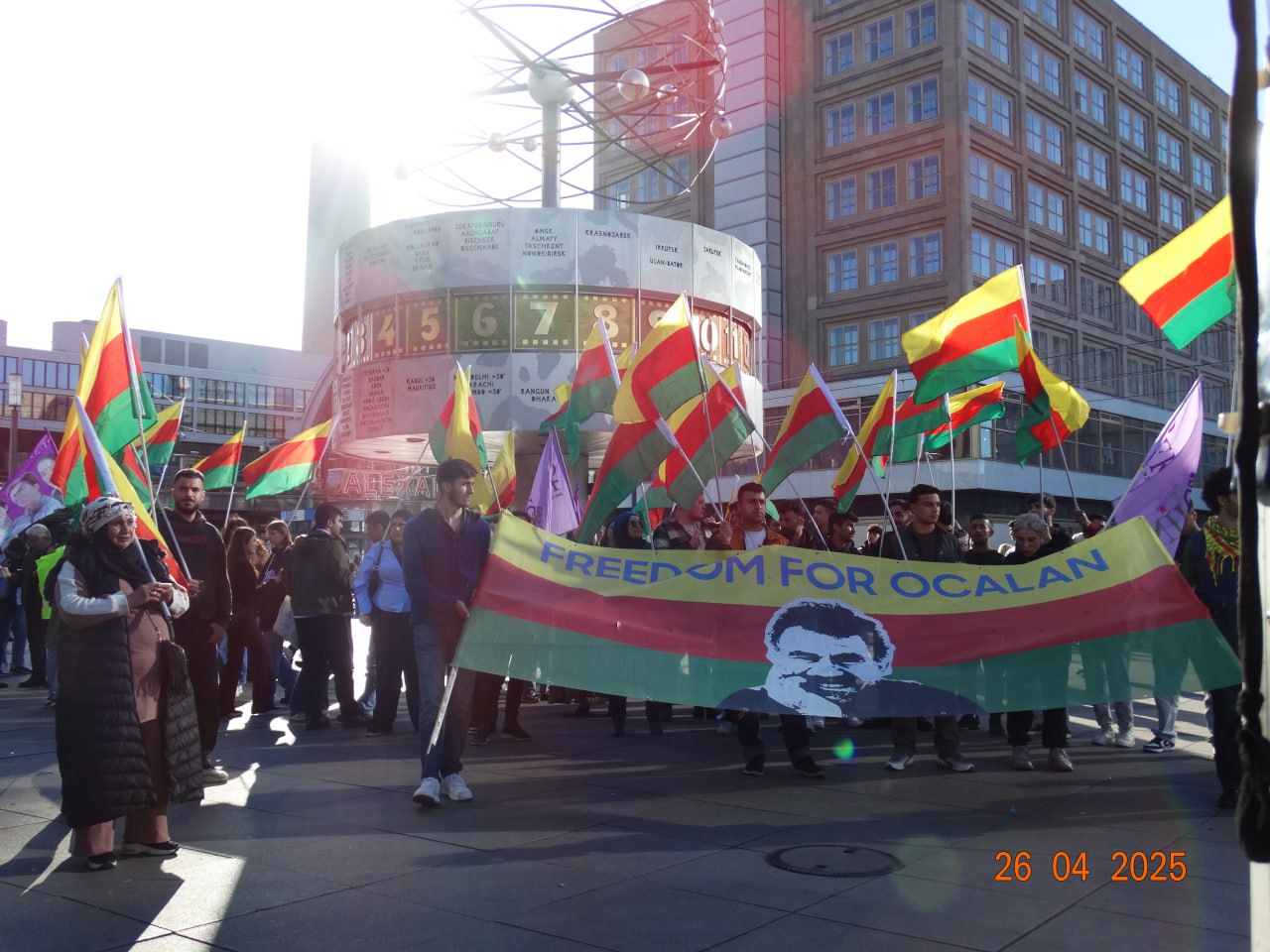 Alexanderplatz Meydanı’nda bir araya gelen Kürt halkı ve dostları, Kurdistan Özgürlük Şehitleri için saygı duruşunda bulundu.