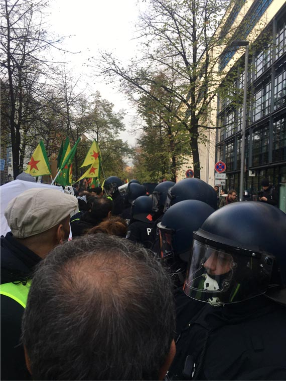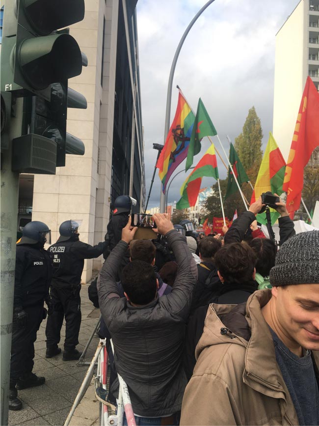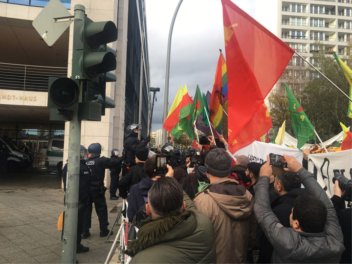 Kent merkezindeki caddelerden yürüyen kitle daha sonra federal hükümet partilerinden SPD’nin genel merkezi önüne ulaştı. Burada yapılan konuşmalarda SPD ve federal Alman hükümetine Erdoğan rejimiyle yürütülen ekonomik, siyasi ve askeri işbirliğinin son bulması talep edildi.