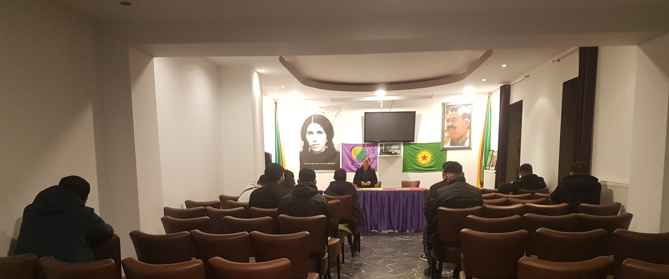 Eğitim saat 18:00’de sona erdi. Eğitimden sonra bir toplantı düzenlendi. Toplantıda KCK ve TCŞ tarafından başlatılan “Tecride, Faşizme, İşgale Son: Özgürlüğü Sağlama Zamanı” ve “Bi Hev Re Serhildan” hamleleri değerlendirildi. Halklar Önderi Abdullah Öcalan’ın özgürlüğüne ve özgürlük hamlesinde gençliğin rolüne de dikkat çekilen toplantıda 5 Aralık’ta Stuttgart’ta düzenlenecek yürüyüşüne katılım çağrısında bulunuldu.