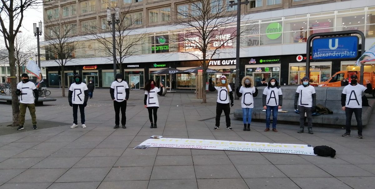 BERLİN – Tevgera Ciwanên Şoreşger (TCŞ) ve Tevgera Jinên Ciwan ên Têkoşer (TekoJIN) aktivistleri, Almanya’nın başkenti Berlin’in Alexanderplatz meydanında düzenledikleri eylem ile Önder Öcalan’a uygulanan tecridi protesto ederken, Öcalan’ın özgürlüğü talebini yükseltti.