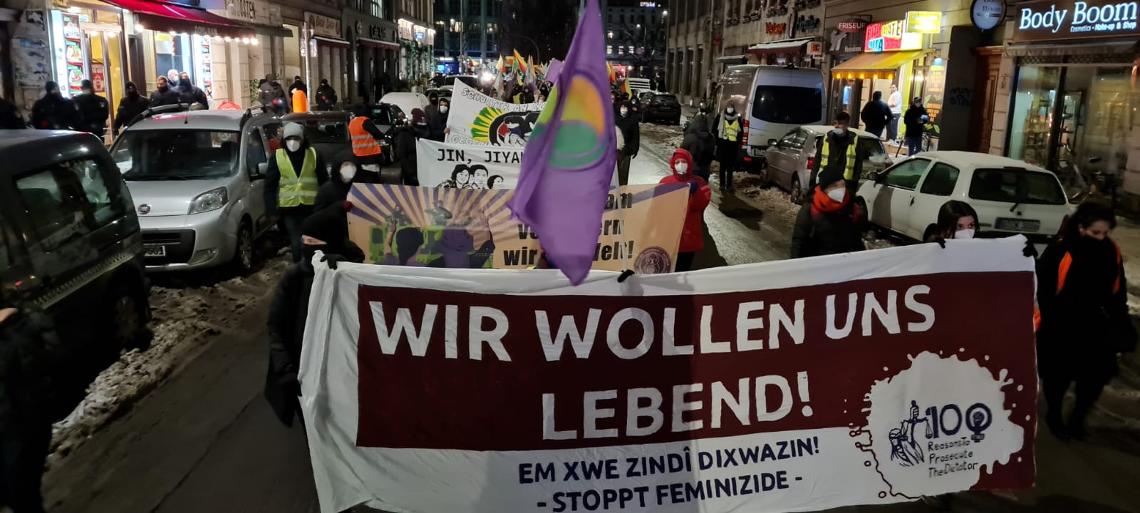BERLİN – TCŞ, TekoJIN ve enternasyonalist gençliğin düzenlediği yürüyüşe Özgür Kürdistanlılar Meclisi, Dest-Dan Kadın Meclisi ve birçok sivil toplum örgütü katıldı.