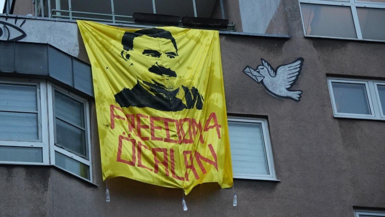 Eylem sırasında TCŞ’li gençler, üzerinde “Freedom for Öcalan” yazılı pankartı bir binaya asarak gençliğin kararlı duruşunu görünür kıldı.