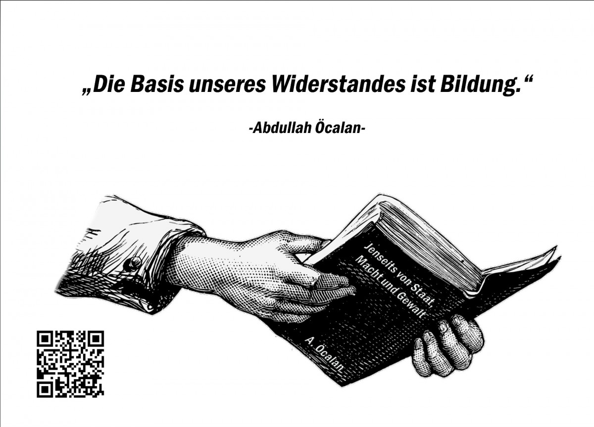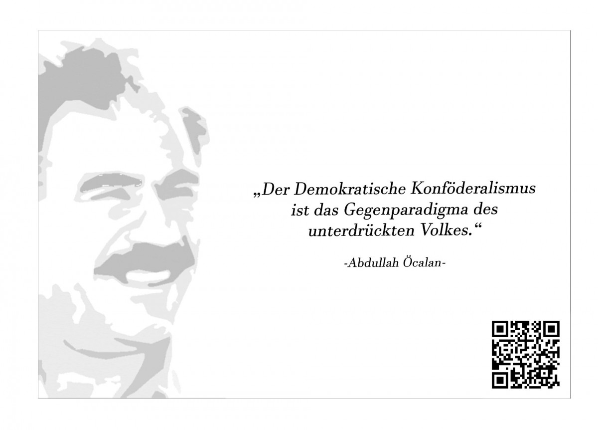 Civaka Azad tarafından bu hafta yayınlanan yazıdan derlenen bildiri de, Türk devletinin savaş politikasına, siyasi soykırım operasyonlarına ve Almanya-Türkiye işbirliğine dair bilgilendirmelerin bulunduğu bildirileri posta kutularına dağıttılar. Aynı zamanda bildiriye ANF sayfasına götüren bir QR kod da konuldu. Bunun yanı sıra gençler Halklar Önderi Abdullah Öcalan’a uygulanan sistematik ve ağır tecrite dikkat çekmek amacıyla da Önder Öcalan’ın sözlerinin bulunduğu küçük kartları posta kutularına dağıttı. Kartın ön tarafında Önder Öcalan’ın sözleri ve www.freeocalan.org sayfasına götüren bir QR kod bulunurken arka tarafında da tecrite ilişkin kısa bir yazı bulunuyor.