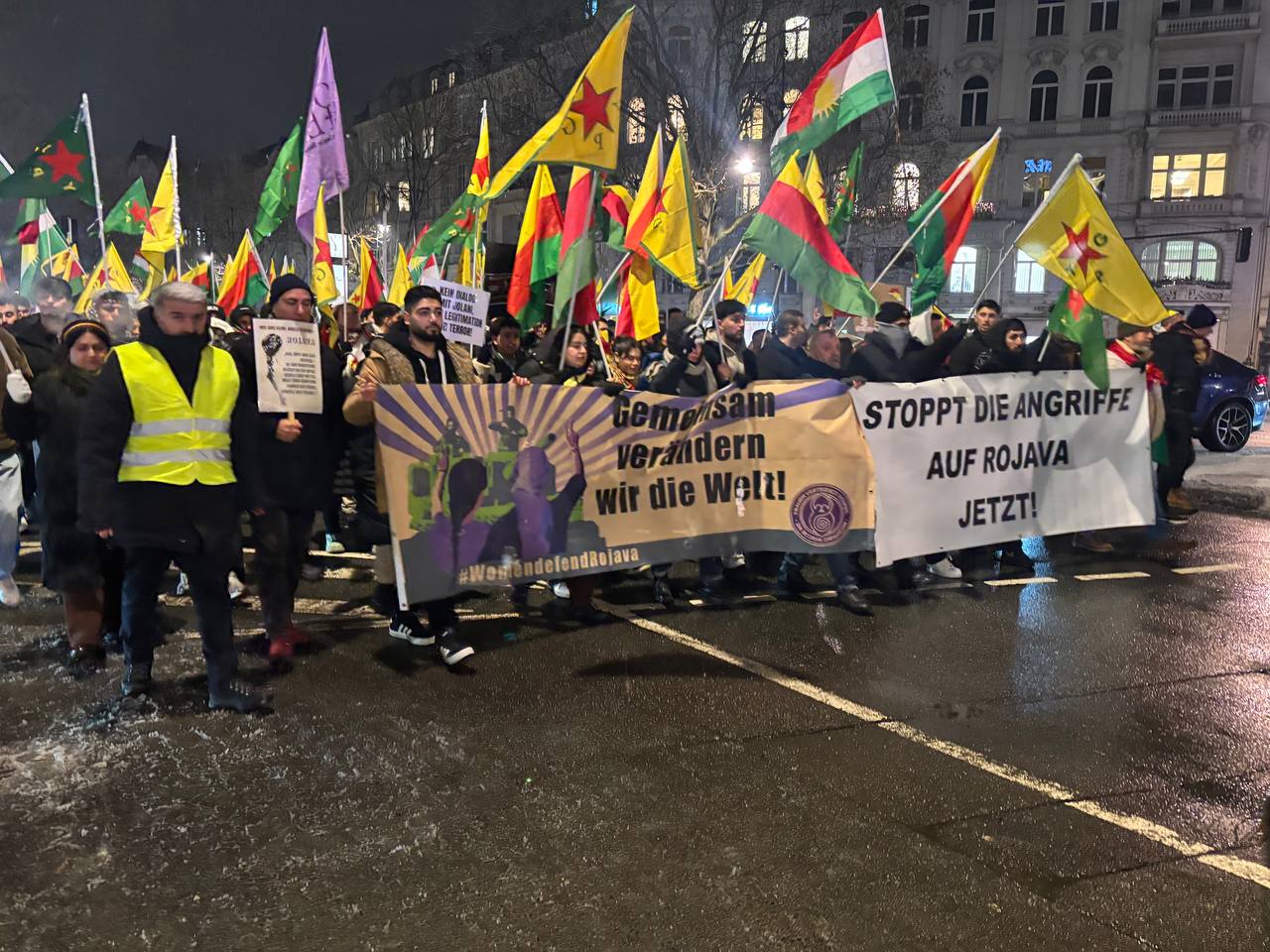 Yürüyüş, TCŞ (Tevgera Ciwanên Şoreşger), TekoJIN (Jinên Ciwan ên Têkoşer), Dest-Dan Kadın Meclisi, Nav-Berlin ve çok sayıda Kürt kurumunun öncülüğünde gerçekleşti. Eyleme yoğun katılım gösteren gençler, Rojava’da inşa edilmeye çalışılan demokratik, çoğulcu ve özgür yaşam iradesinin hedef alındığını vurguladı.