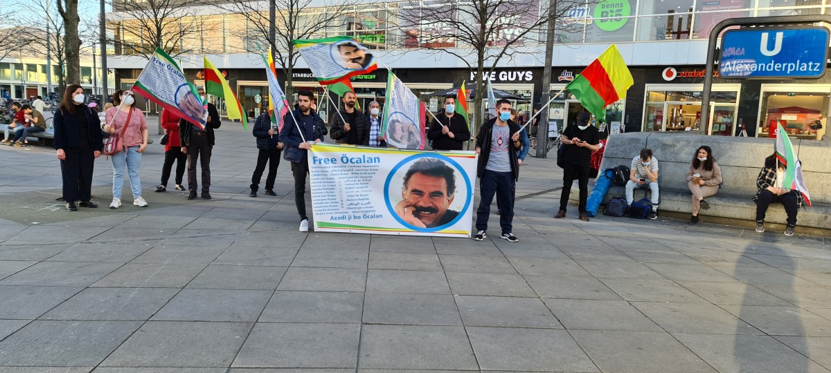 Miting Alexanderplatz’da başladı. Eylemde Önder Öcalan’ın posterlerini taşıyan gençler “Free Öcalan” yazılı pankart taşındı. Eylemde sık sık Almanca ve Kürtçe “Bijî Serok APO” ve “Yaşasın Öcalan” sloganları atıldı.