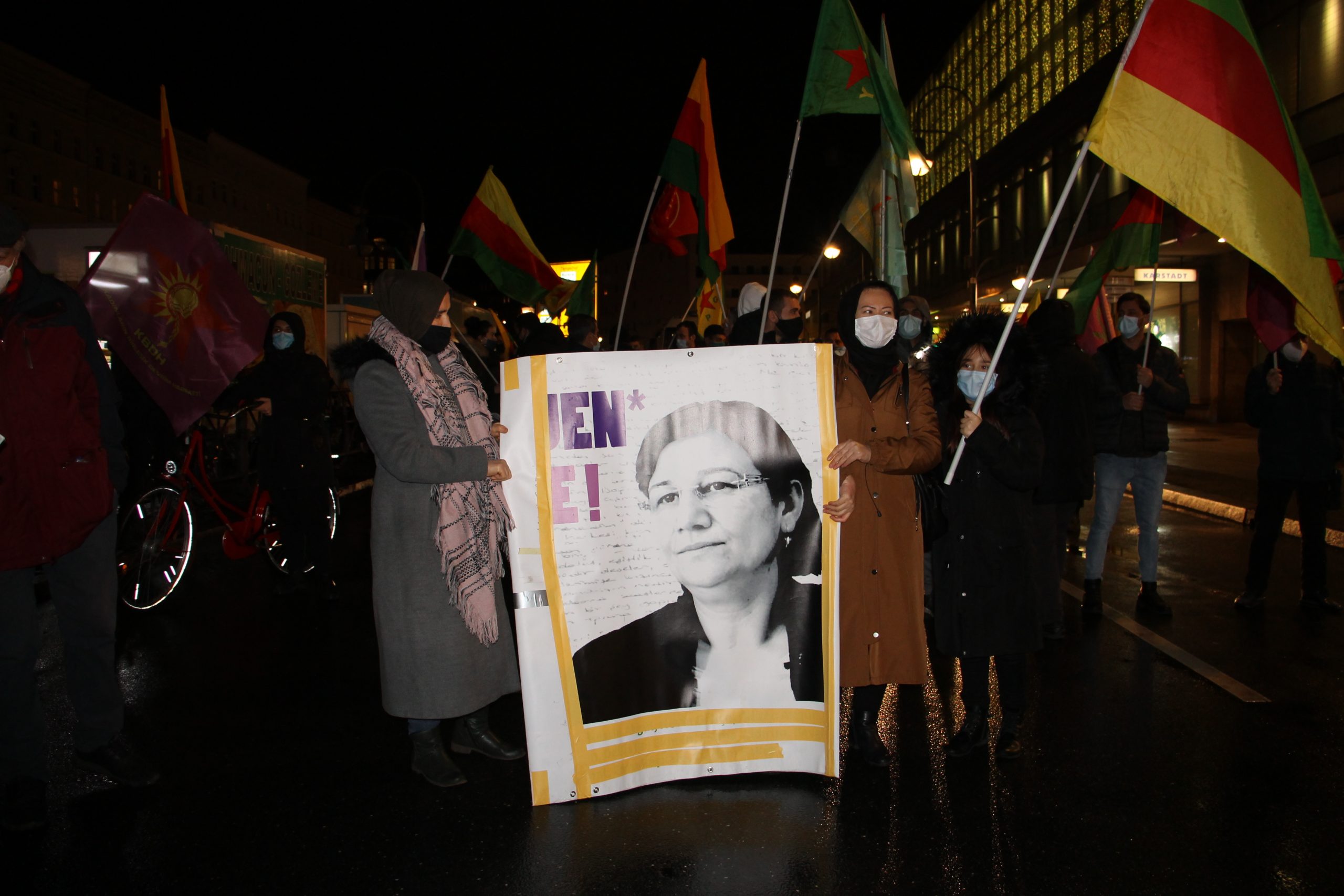 Yürüyüş boyunca sürekli “Jin, Jiyan, Azadî”, “Leyla Güven Onurumuzdur”, “Bijî Berxwedana Şengalê” sloganları atılırken, eylem Oranienburger str.de son buldu.
