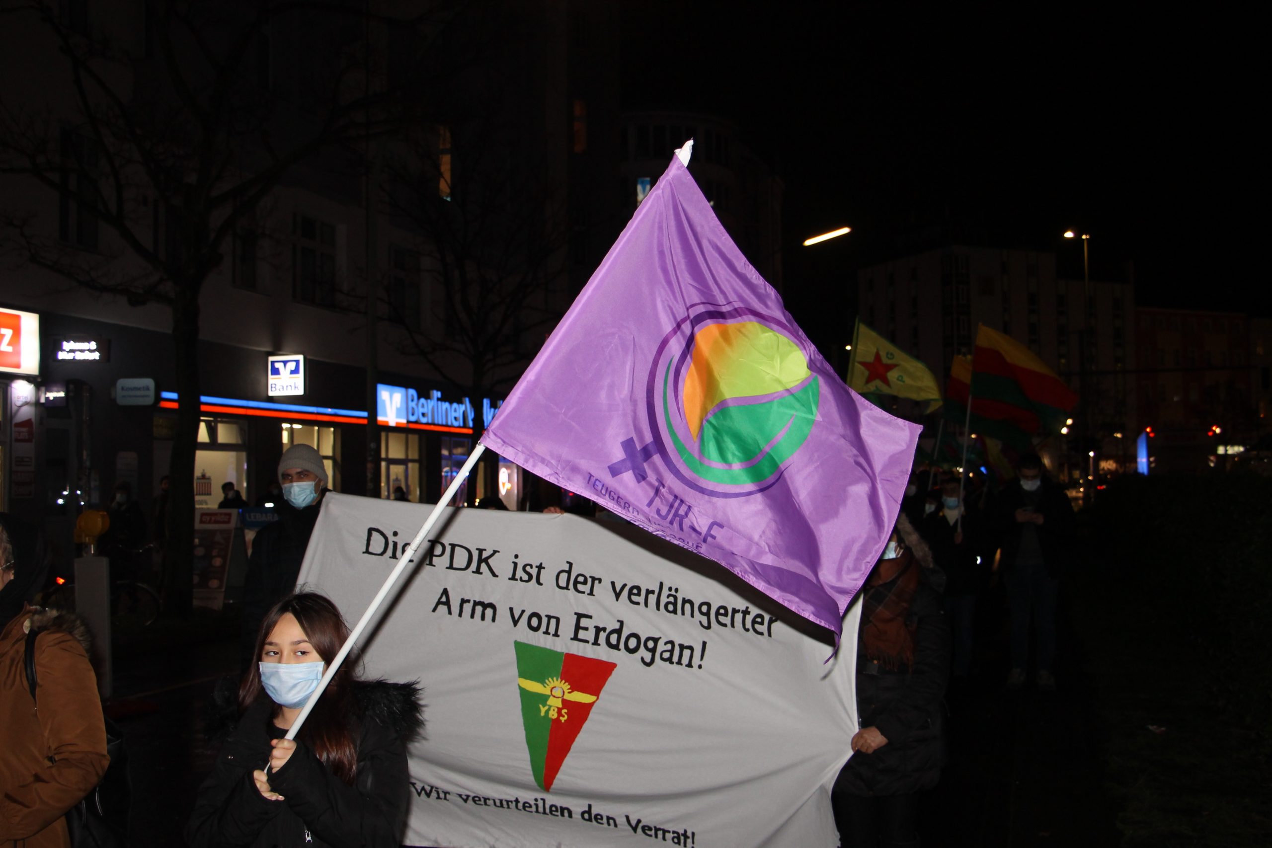 Tevgera Ciwanên Şoreşger ve Jinên Ciwan ên Têkoşer öncülüğünde, Almanya’nın başkenti Berlin’de bir araya gelen Kürdistanlılar, KDP’nin provokatif siyaseti ve DTK Eşsözcüsü Leyla Güven’e verilen 22 yıllık cezayı düzenledikleri yürüyüş ile protesto etti.