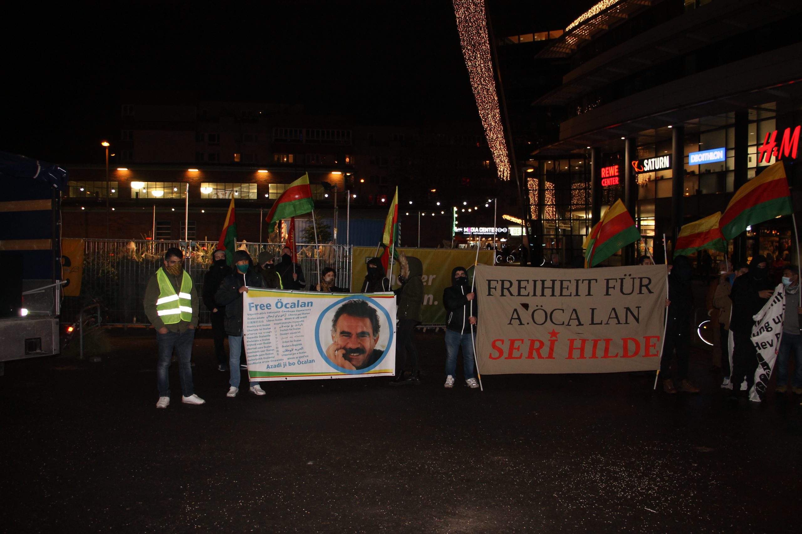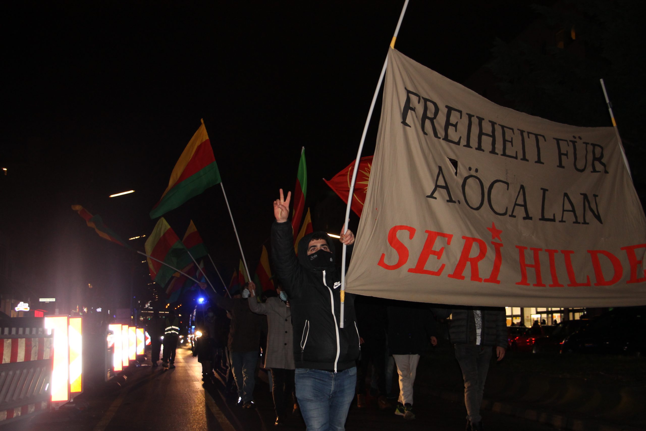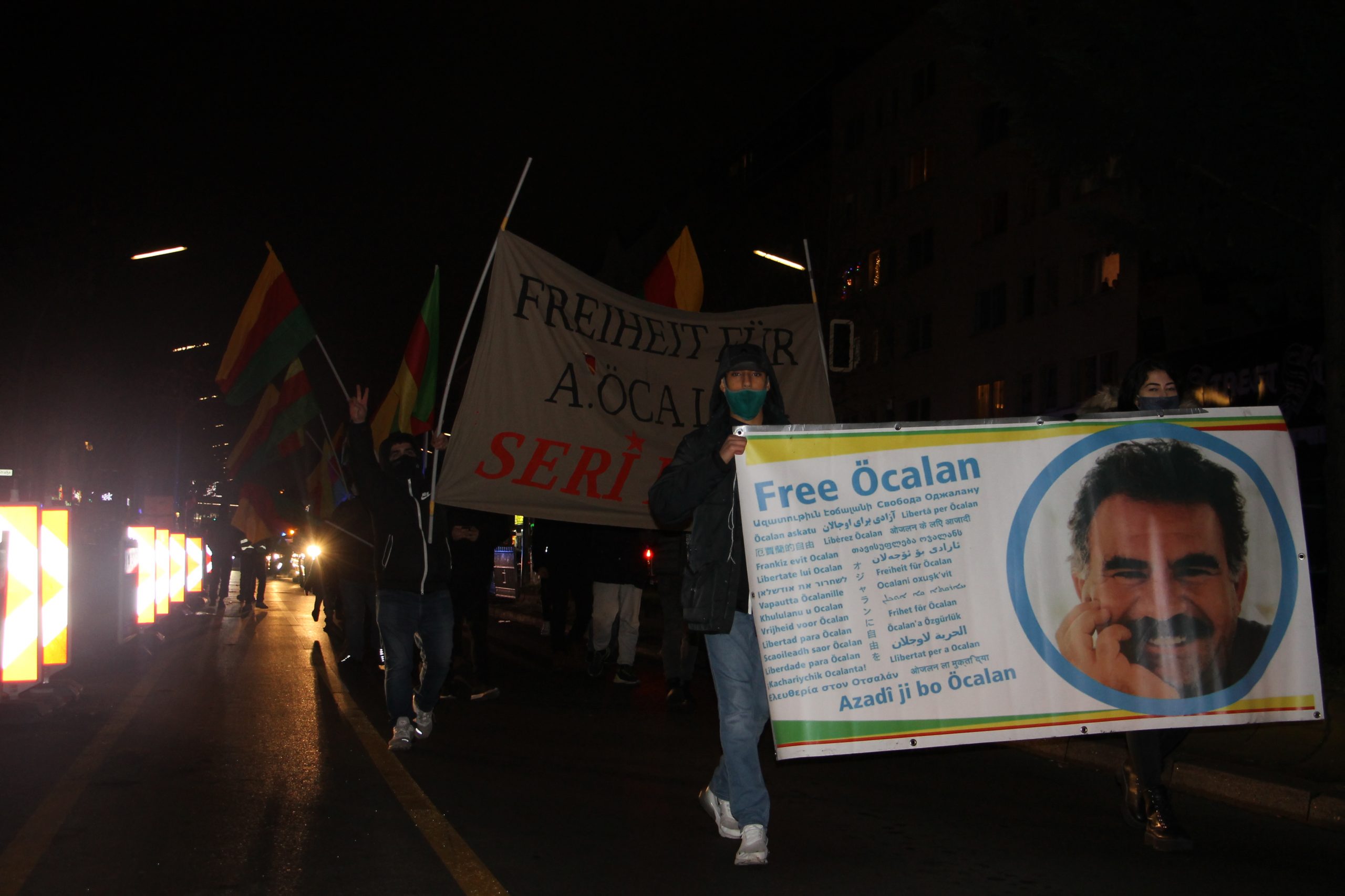 Açıklama sonrası şehir içerisinde yürüyüşe başlayan gençler Almanca, “Öcalan’a Özgürlük”, “Tecride, Faşizme, İşgale Son – Bi Hev Re Serhildan” pankartlarını açarken sık sık, “Freiheit Für Öcalan”, “Terorist Erdogan”, “İntikam” sloganlarını attı.