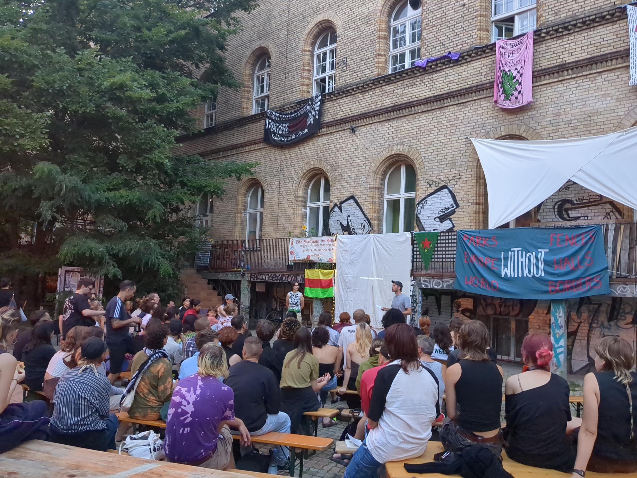 Perşembe akşamı Berlin Enternasyonalist Gençlik Komünü tarafından düzenlenen film gösterimi için 80 kişi Berlin Kreuzberg’de bir araya geldi. Rojava Devrimi’nin kökenleri, Medya savunma alanlarına yönelik güncel saldırıların boyutu ve önemi ve Önder APO’nun özgürlüğü için yürütülen kampanya hakkında yapılan bir konuşmanın ardından, akşam karanlığı çökerken belgeselin gösterimi yapıldı. Ziyaretçiler daha sonra Rojava’nın güvenlik güçleri olan Asayişin bir parçası olan genç Arap kadın Hala’nın hayatını anlatan belgeseli dikkatle izledi. Bir izleyicinin belirttiği gibi, filmdeki genç kadın Hala devrimin ne anlama geldiğini ve genel toplumsal dönüşüm zemininde kadınların özgürleşmesinin kapsamını gösteriyor.