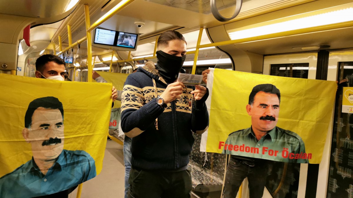 Saat 18’de şehir içi tramvay hattı olan U-Bahn’da tramvay seferlerine ellerinde Önder Öcalan’ın posterleri ile giren gençler, burada Önder Öcalan’a yönelik uygulanan devletlerarası komplo ve ağırlaştırılmış tecride dikkat çeken bir bildiri okudular. Önder Öcalan’ın Ortadoğu ve tüm dünya halkları için bir umut olduğunun belirtildiği bildiride, Halklar Önderi’nin fiziki özgürlüğü için zaman kaybetmeksizin herkesin harekete geçmesi çağrısı da yapıldı. Bildiri sonrası Kürtçe ve Almanca sloganlar da atan gençler, Önder Öcalan’ın fiziki özgürlüğü sağlanana kadar eylem ve çalışmalarına farklı tarz ve tempoda devam edeceklerini belirttiler.