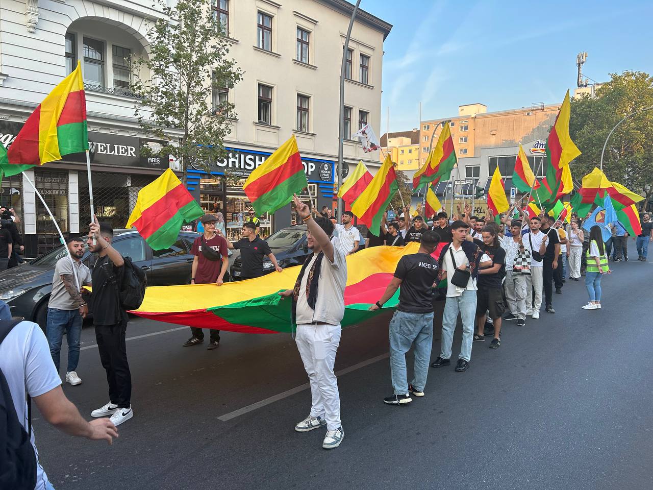 Berlin’in işlek bölgelerinden biri olan Gesundbrunnen’de, Kürdistan şehitleri için saygı duruşuyla başlayan yürüyüş, yapılan açıklamalarla devam etti.
