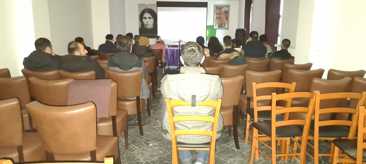Seminer saat 16.30’da bir açılış konuşması ile başladı. Halklar Önderi Abdullah Öcalan’ın “Erkeği Öldürme ve Kadın Sorunu” ve 8 Mart’a ilişkin değerlendirmelerin dinlenildiği seminerde, 8 Mart ile ilgili bir konuşma da yapıldı. Yapılan konuşmada 8 Mart’ın tarihi, anlamı ve önemi değerlendirilirken, erkek egemen zihniyete ve Önder Öcalan ile Kürt Özgürlük Hareketinin kadın özgürlük çizgisine yaklaşımına değinildi.