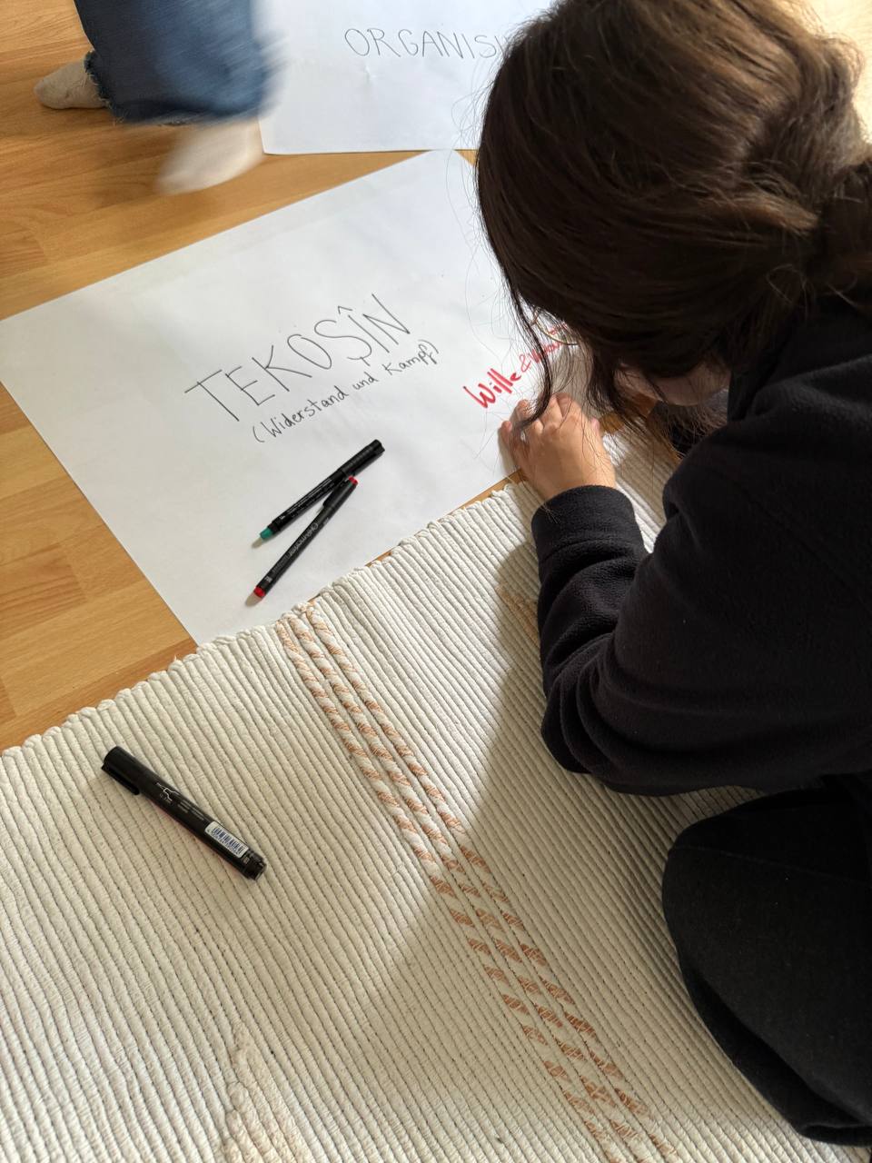 Genç kadınlar, tartışmalar sırasında somut örnekler üzerinden çözüm arayışlarına yönelerek, örgütlü yaşam ve ortak çalışma yöntemleri üzerinde yoğunlaştı. Eğitim kapsamında ayrıca Şehid Bager Nujiyan’ın kaleme aldığı bir mektup ve günlük bölümleri okundu.