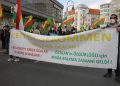 Saat 17’de Hermanplatz’da Kürdistanlılar’ın toplanması sonrası bir dakikalık saygı duruşu ile başlayan eylem açıklamalar ile devam etti.