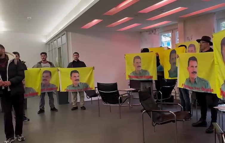 “Bijî Serok Apo” ve “Es lebe Öcalan” sloganları atan gençler, eylem sonrası basın açıklaması gerçekleştirdi.