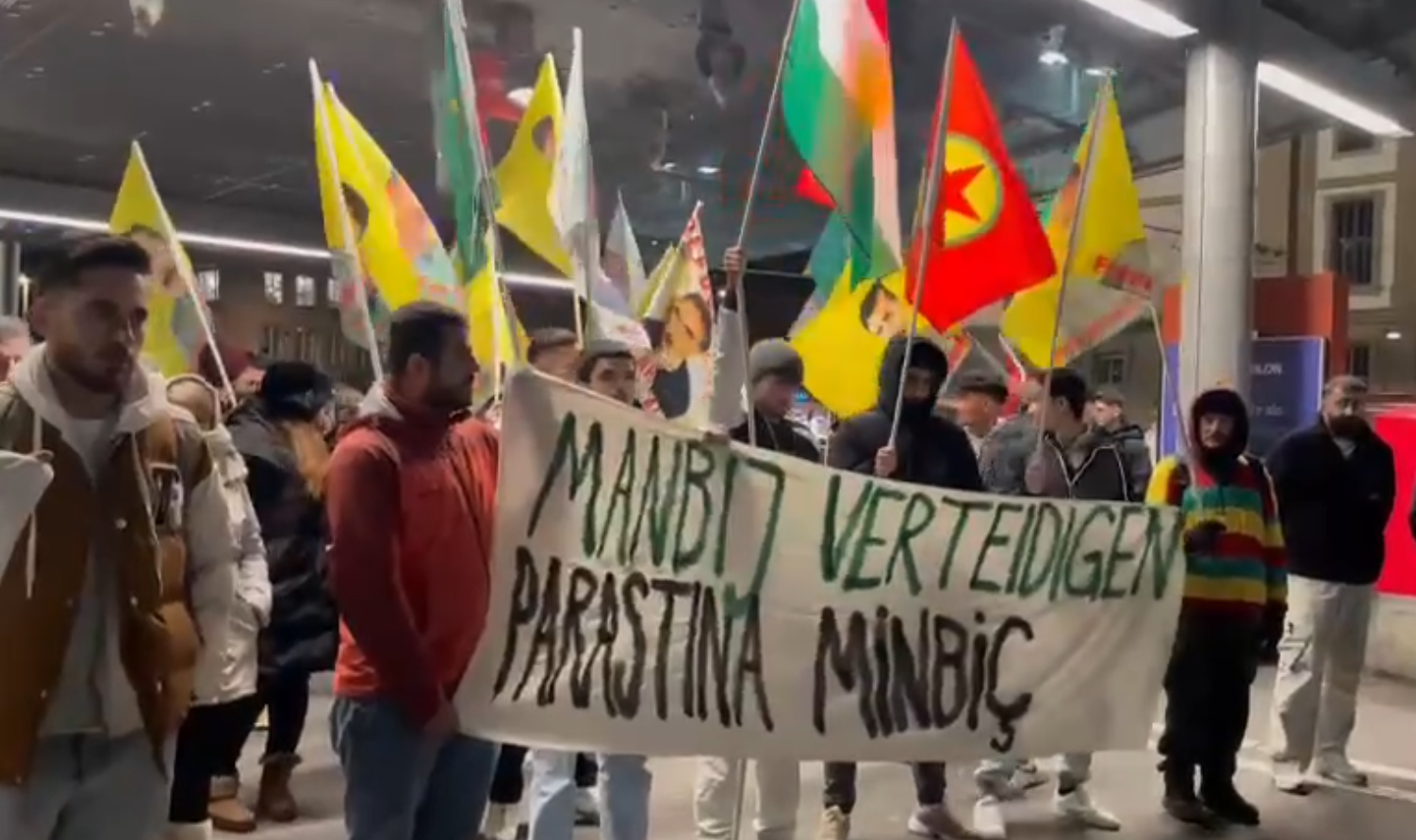 BERN – İsviçre’nin Bern şehrinde Tevgera Ciwanên Şoreşger (TCŞ) üyesi gençler ve Genel Meclis öncülüğünde Bern Merkez Tren Garında bir araya gelen Kürdistanlılar ve dostları, faşist ve soykırımcı Türk devleti ve işbirlikçi çetelerinin Kuzey ve Doğu Suriye’ye dönük saldırılarını protesto etti.