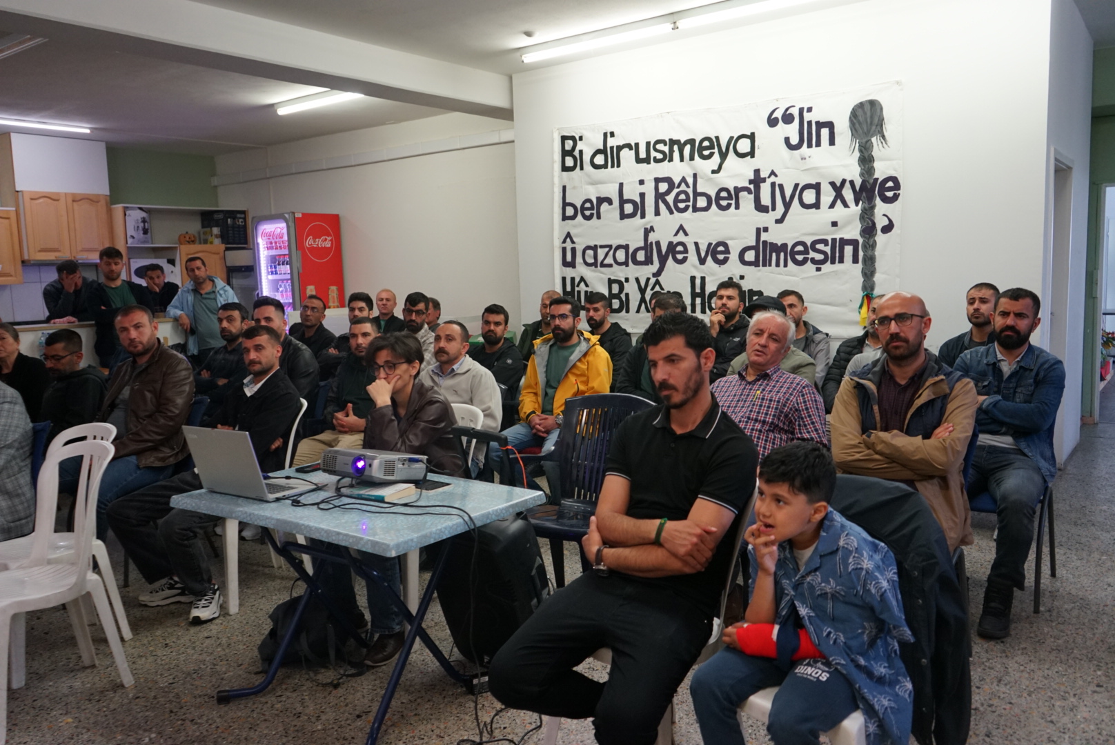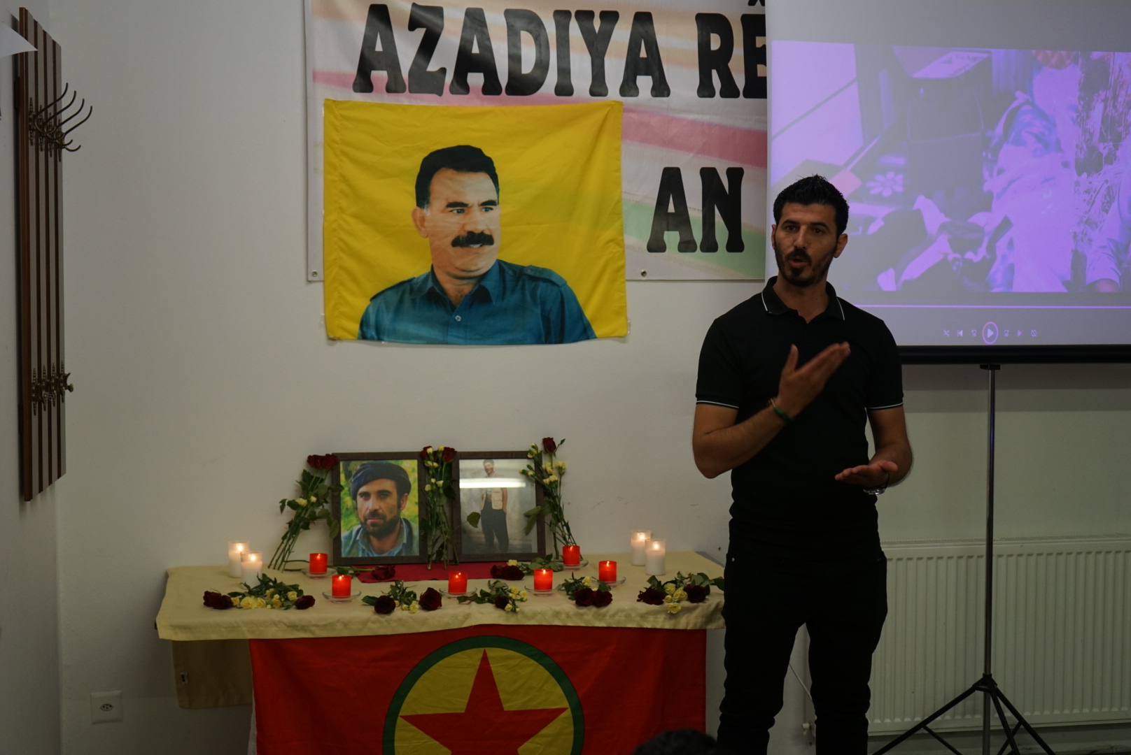 Açılış konuşmasını İsviçre Şehid Aile Kurumu (KOMAW) eş sözcüsü Mustafa Karahan yaptı.