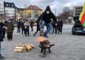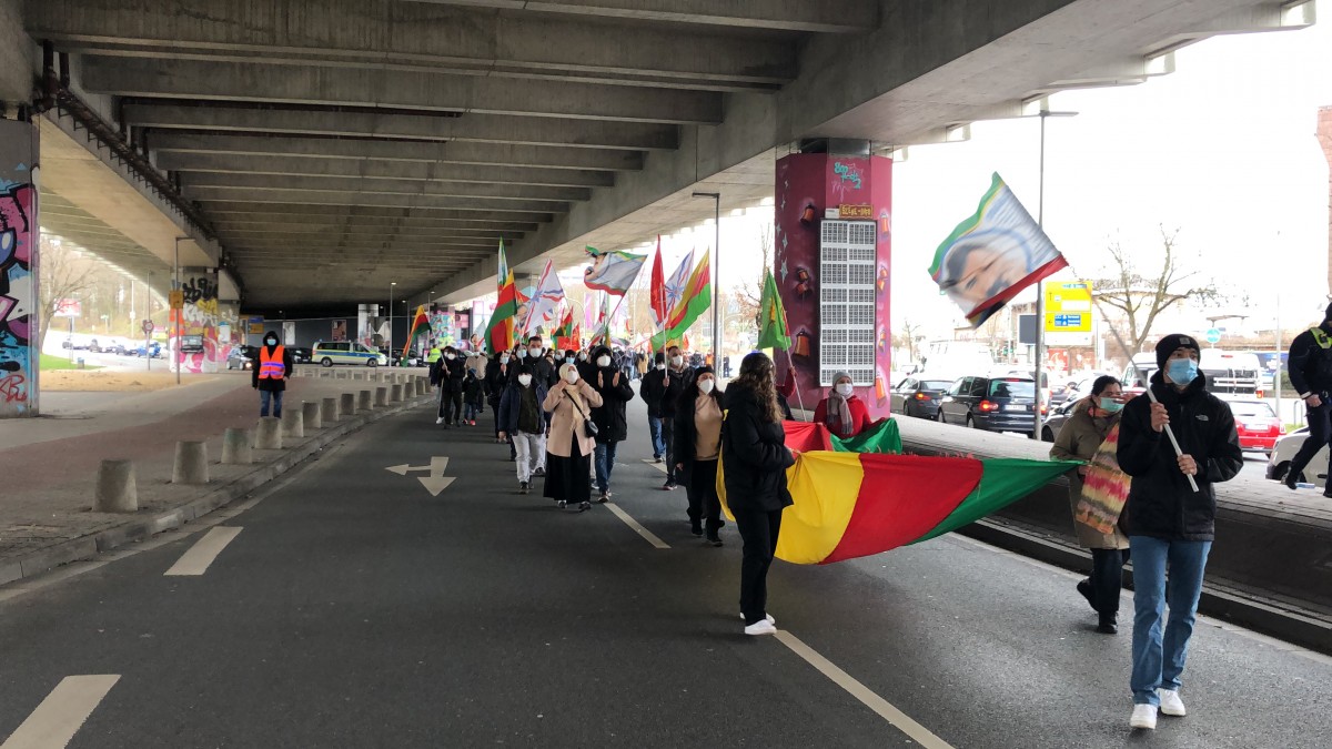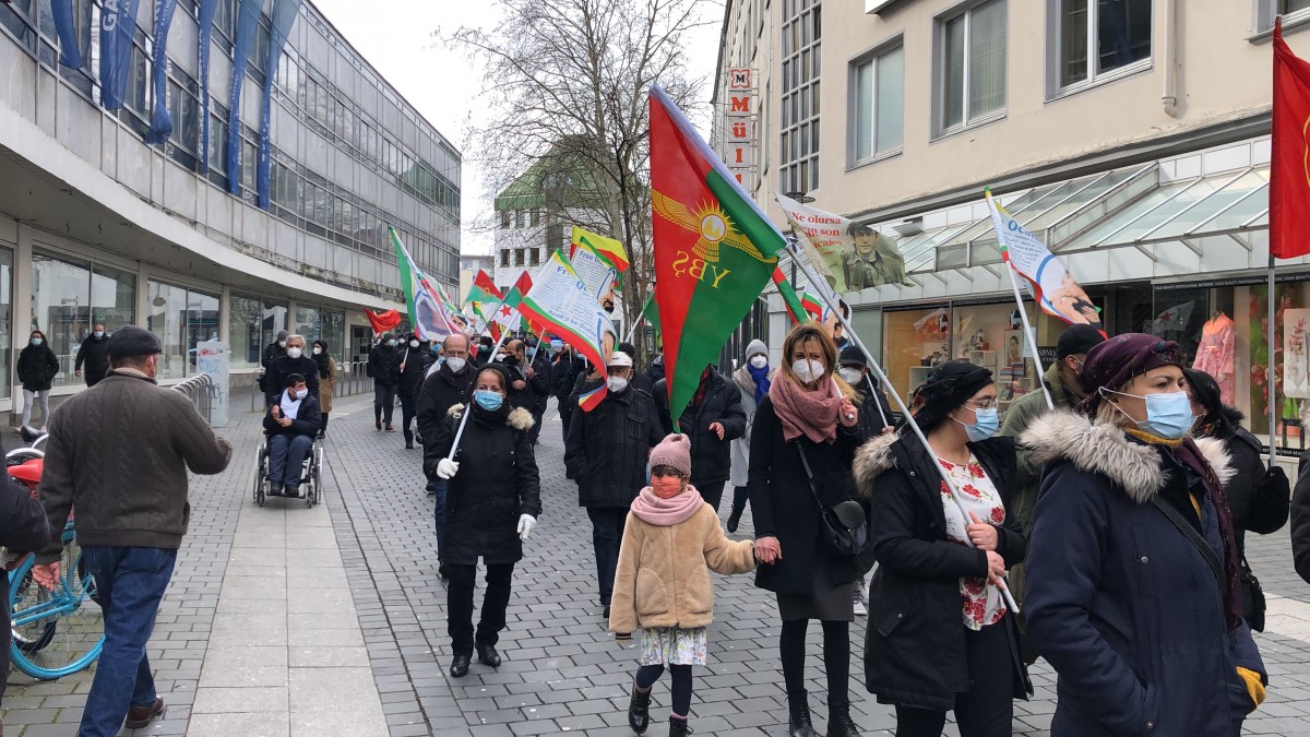 Bine yakın kişinin katıldığı kutlamalar, merkez tren istasyonu önünde başladı. Önder Öcalan’ın posterleri ile YBŞ ve TCŞ bayraklarının açıldığı yürüyüşün en önünde Almanca, “Mazlum Doğan ruhuyla direnişimizi yükselteceğiz. Newroz Kutlu Olsun” yazılı pankart taşındı.