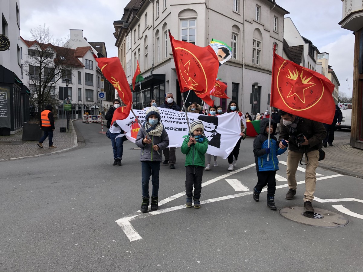 Bielefeld’in yoğun çarşı ve sokaklarında yapılan yürüyüş, Kesselbrink parkına kadar sürdü. Burada yapılan mitingde Bielefeld Halk Meclisi Eşbaşkanı Hatun Doğan, PYD’den İsa Rojava, TCŞ’den Serhad Ciwan, DGB’den İsmail Taş, Antifa gruplar adına Roza Roj ile siyasetçi Osman Ergin birer konuşma yaptı.