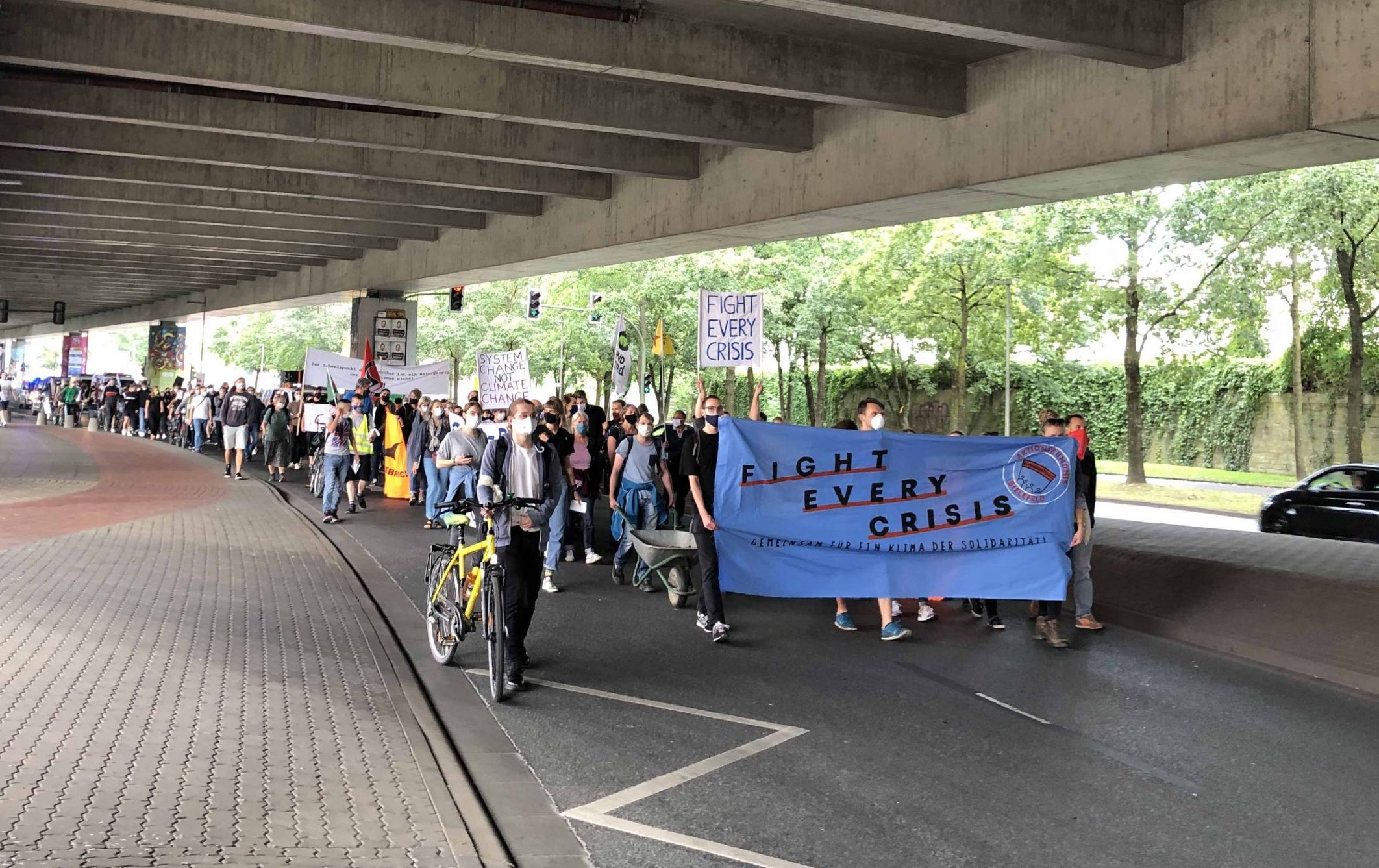 “Doğa değişmesin, sistem değişmeli ve iklim sorununu çözmek için kapitalizmi çökertmemiz gerekiyor!” sloganının öne çıktığı yürüyüş saat 16’da Bielefeld merkez tren istasyonunda yaklaşık 400 kişi ile başladı.