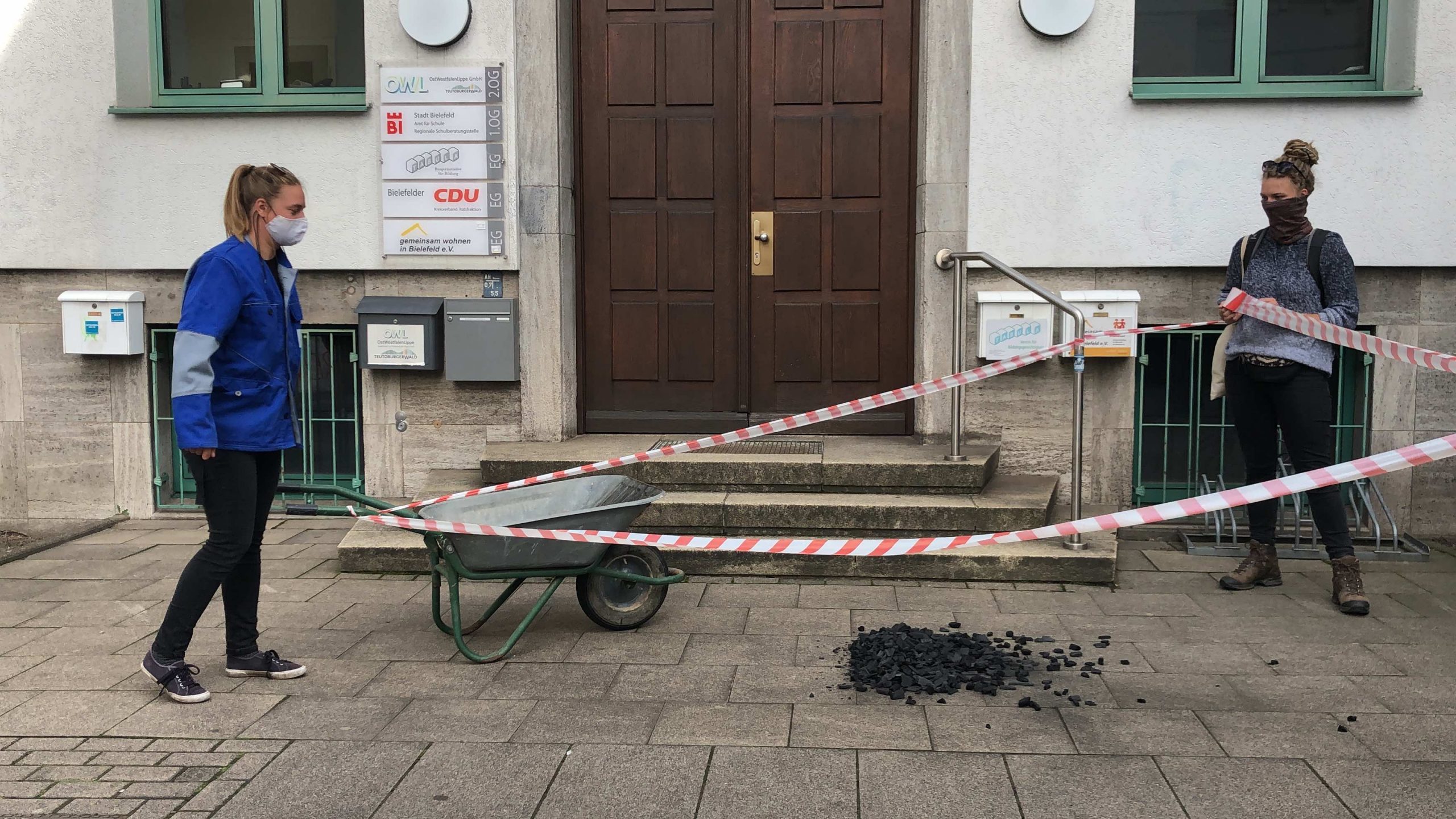 Daha sonra Bielefeld’de bulunan CDU binasının önüne sembolik kömür döküldü. “Ende Gelände“ aktivisti konuşmasında CDU’nun kömür madenciliği politikasını kınadı.