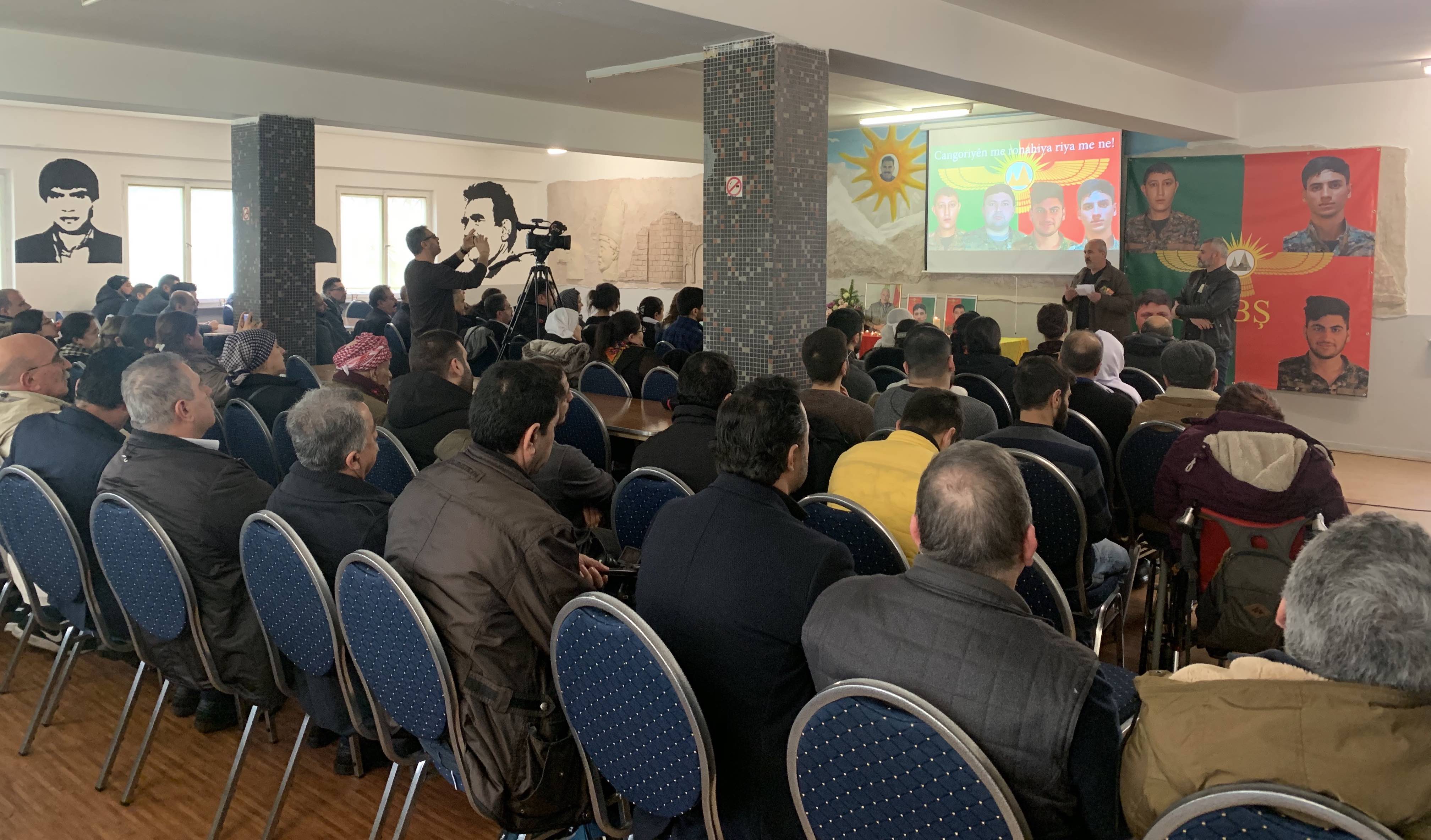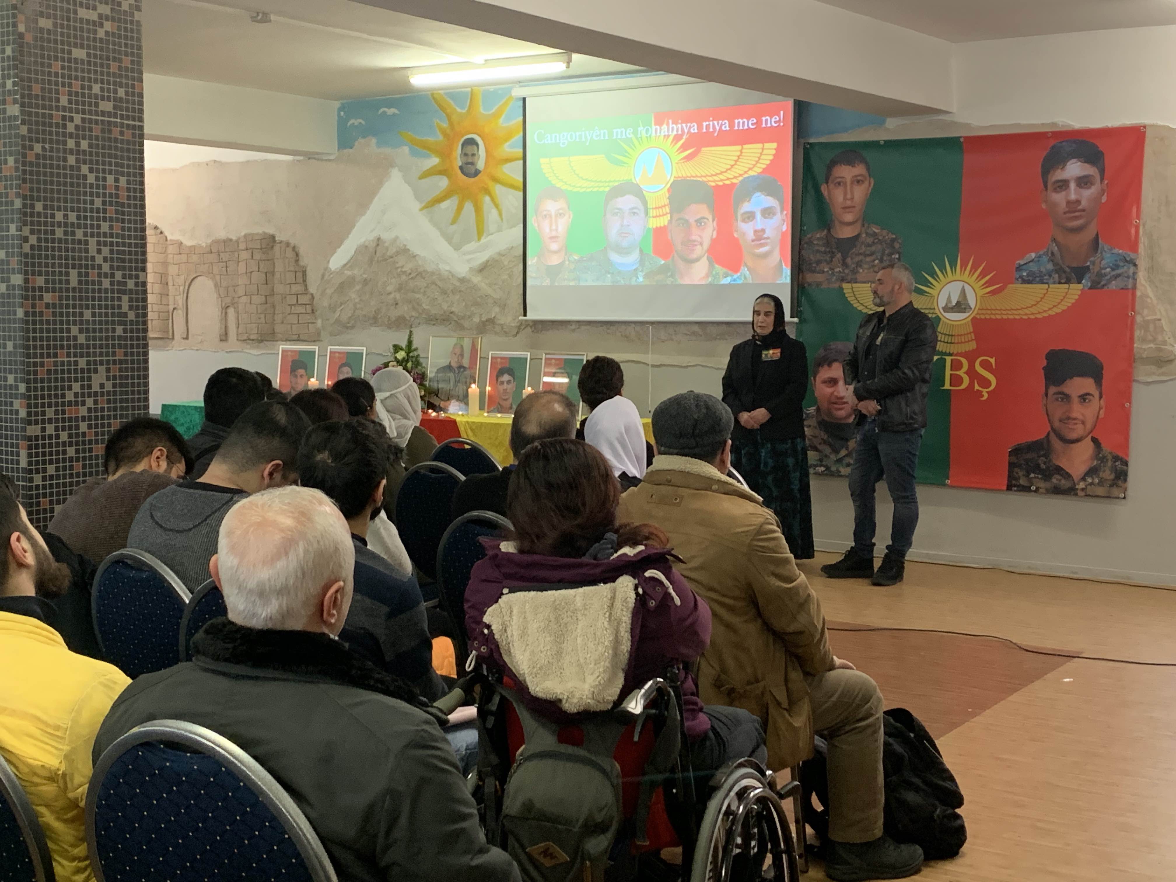 BİELEFELD – Pazar günü öğle saatlerinde Bielefeld Demokratik Kürt Toplum Merkezi’nde 15 Ocak’ta faşist Türk devletinin hava saldırısında şehit düşen 4 YBŞ savaşçısı Zerdeşt Şengalî, Şervan Cîlo, Hemîd Şengalî, Êzdîn Şengalî ve Mam Zekî Şengalî anısına bir anma etkinliği düzenlendi.