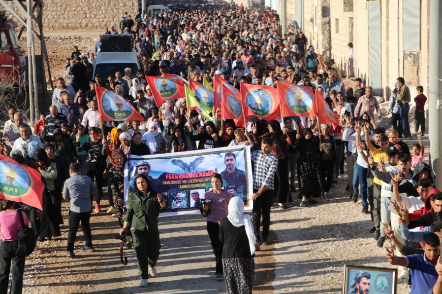 HABER MERKEZİ- İşgalci Türk devletinin 10 Haziran 2023’te insansız hava aracıyla gerçekleştirdiği saldırıda şehadete ulaşan Efrîn Kurtuluş Güçleri (HRE) Komutanı Şehit Karker Tolhildan (Redvan Ulugana) için Ehrez’deki Direniş Şehitleri Şehitliği’nde gıyabi tören düzenlendi. Törene Efrînli göçmenler ile Şehba halkı katıldı.