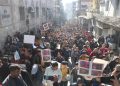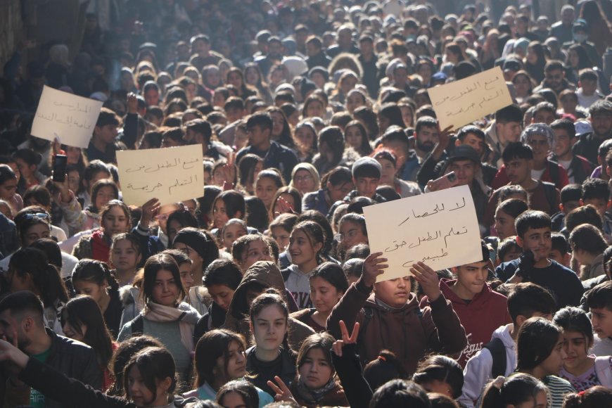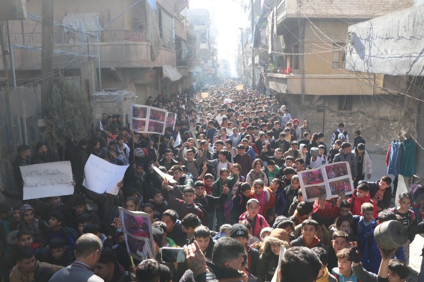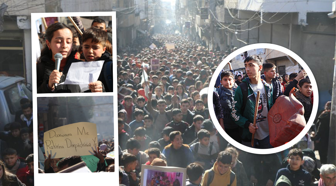 HALEP – Şeyhmaksud ve Eşrefiye mahallelerinde binlerce öğrenci, geçiş hükümeti güçlerinin iki mahalleye uyguladığı ambargoyu protesto etmek için bir yürüyüş düzenledi.