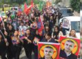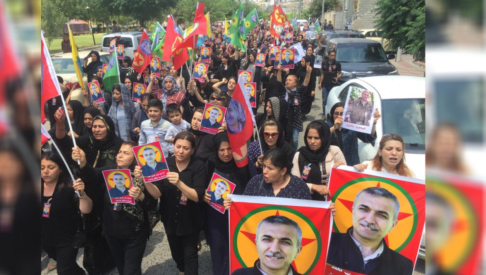 PKK, KCK bayrakları ile Halklar Önderi Abdullah Öcalan’ın ile şehit Helmet’in posterlerini taşıyan kitlenin yürüyüşü Bextiyari Mahalllesi’nde başladı ve Süleymaniye’deki City Center’in yanında bulunan Ahesur Cami’sine kadar devam etti.