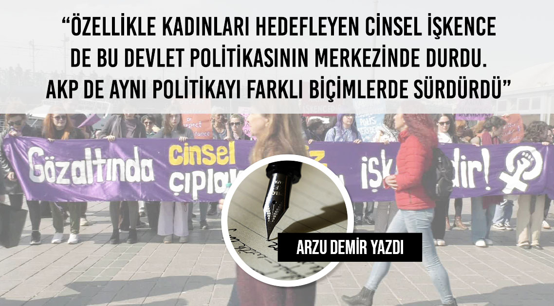 İşkence kimi zaman dozu az, kimi zaman çok, bir devlet politikası olarak hep uygulanageldi. Hedef, tıpkı bugün olduğu gibi, muhaliflerin iradesini kırmak ve korku iklimi yaratarak toplumu teslim almaktı. Özellikle kadınları hedefleyen cinsel işkence de bu devlet politikasının merkezinde durdu. AKP de aynı politikayı farklı biçimlerde sürdürdü, hiçbir zaman işkenceye iddia ettiği gibi “sıfır tolerans” tanımadı. AB’ye uyum yasalarının çıkartıldığı 2000’lerin ortasında da işkence bir tehdit olarak varlığını korudu, işkenceciler cezalandırılmadı. Hatta bir dönemin ünlü işkenceci ve tecavüzcüsü, sayısız işkence davasının sanığı ve hükümlüsü Sedat Selim Ay’ı terfi ettiren de AKP iktidarı oldu.