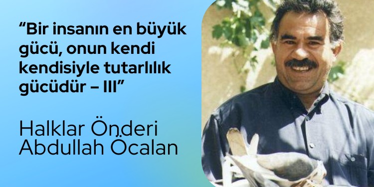 Neden bu kadar büyük yaşam tutkusu gösteriyorum? Bir parti için, bir halkın partiden beklentileri için. Yoksa ben eskiden çok zavallı biriydim, bu kadar yaşama gücünün kenarından bile geçemezdim. Ama şu anda madem bir halk için büyük yaşamak gerekiyor, büyük duymak, büyük düşünmek gerekiyor sonuna kadar açtım kendimi. Çünkü halkın beklentisi bu. Yenilmemek için sonuna kadar düşünüyorum. Eğer savaş gerçeğinde tutarlıysam, yaşama saygılıysam, düşmanın bütün hamlelerini önleyecek kadar yaklaşım gücümün olması gerek. Şimdi bunu kendinize uygulayın; ne kadar temsil etmişsiniz? Hakiki bir PKK’li böyle olur. Hazır düşünceyi bile özümsememek, net parti ölçülerini bile uygulayamamak sizin ancak ve ancak bir suçlu olduğunuzu ortaya koyar.