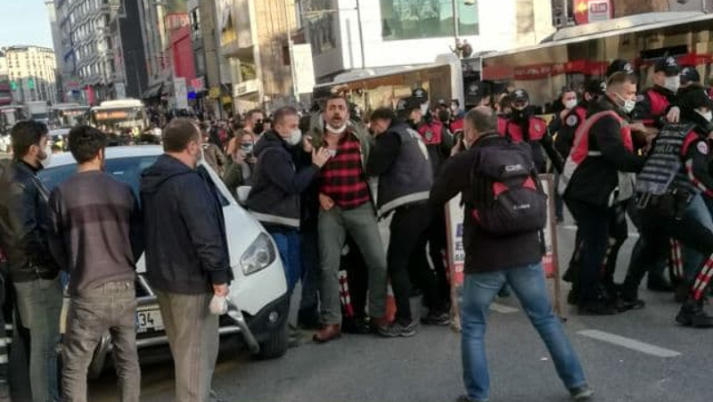 Ablukaya rağmen Halkların Demokratik Partisi (HDP) Kadıköy İlçe Örgütü binası önünde bir araya gelen Birleşik Mücadele Güçleri temsilcileri ile yüzlerce kişi, rıhtıma doğru yürüyüşe geçti. “Baskılar bizi yıldıramaz”, “Faşizme karşı omuz omuza” ve “Yaşasın birleşik mücadelemiz” sloganları eşliğinde yürüyen kitlenin önü polisler tarafından kesildi. Buna rağmen yürüyüşe geçen kitleye polisler müdahale etti.