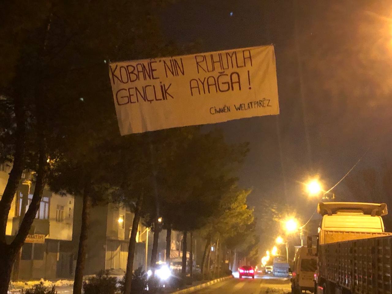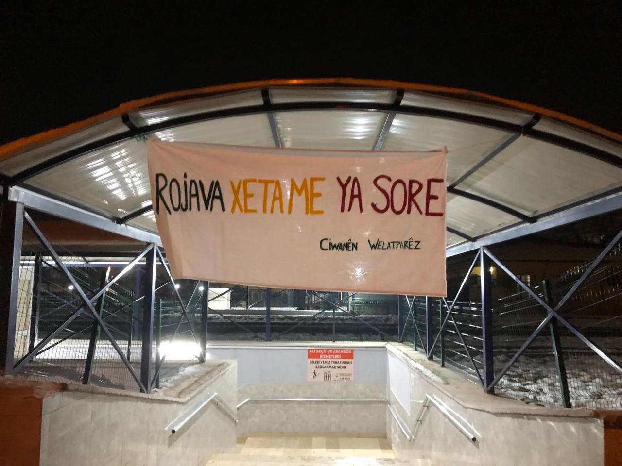 AMED – Amed’in Bismil ilçesinde Yurtsever Gençler, ilçenin bir çok mahallesinde astıkları pankartlar ile Halep’e yönelik HTŞ ve Türk devletine bağlı çeteler tarafından gerçekleştirilen katliam saldırılarını protesto etti.