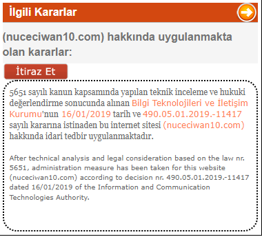 nuceciwan10.com sitemiz hakkında uygulanmakta olan kararlar ise şöyle;
