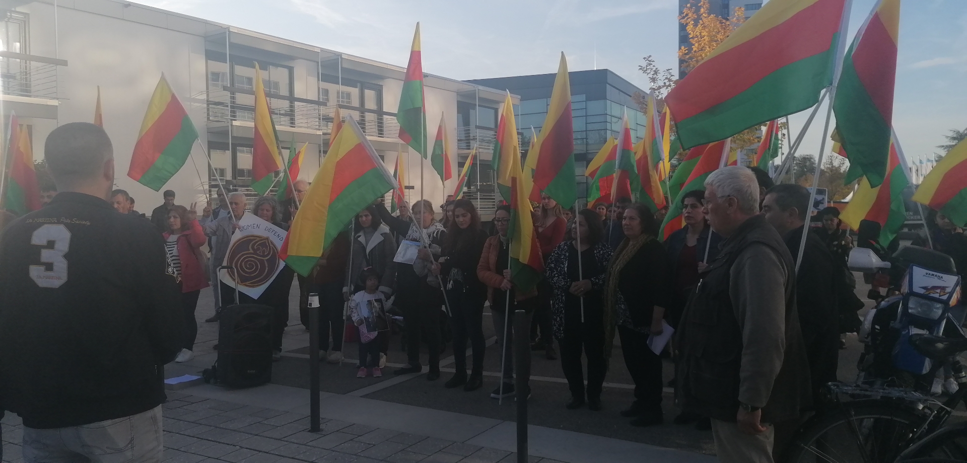 BONN – Türk devletinin Rojava işgal saldırılarına karşı bugün Almanya’nın Bonn kentinde bulunan Birleşmiş Milletler Temsilciliği önünde bir eylem düzenlendi. Çok sayıda Kürdistanlı ve enternasyonal aktivist Bonn Demokratik Kürt Toplum Merkezi çağrısıyla, Rojava üzerindeki Türk işgaline karşı Bonn Birleşmiş Milletler Temsilciliği önünde bir araya geldi.