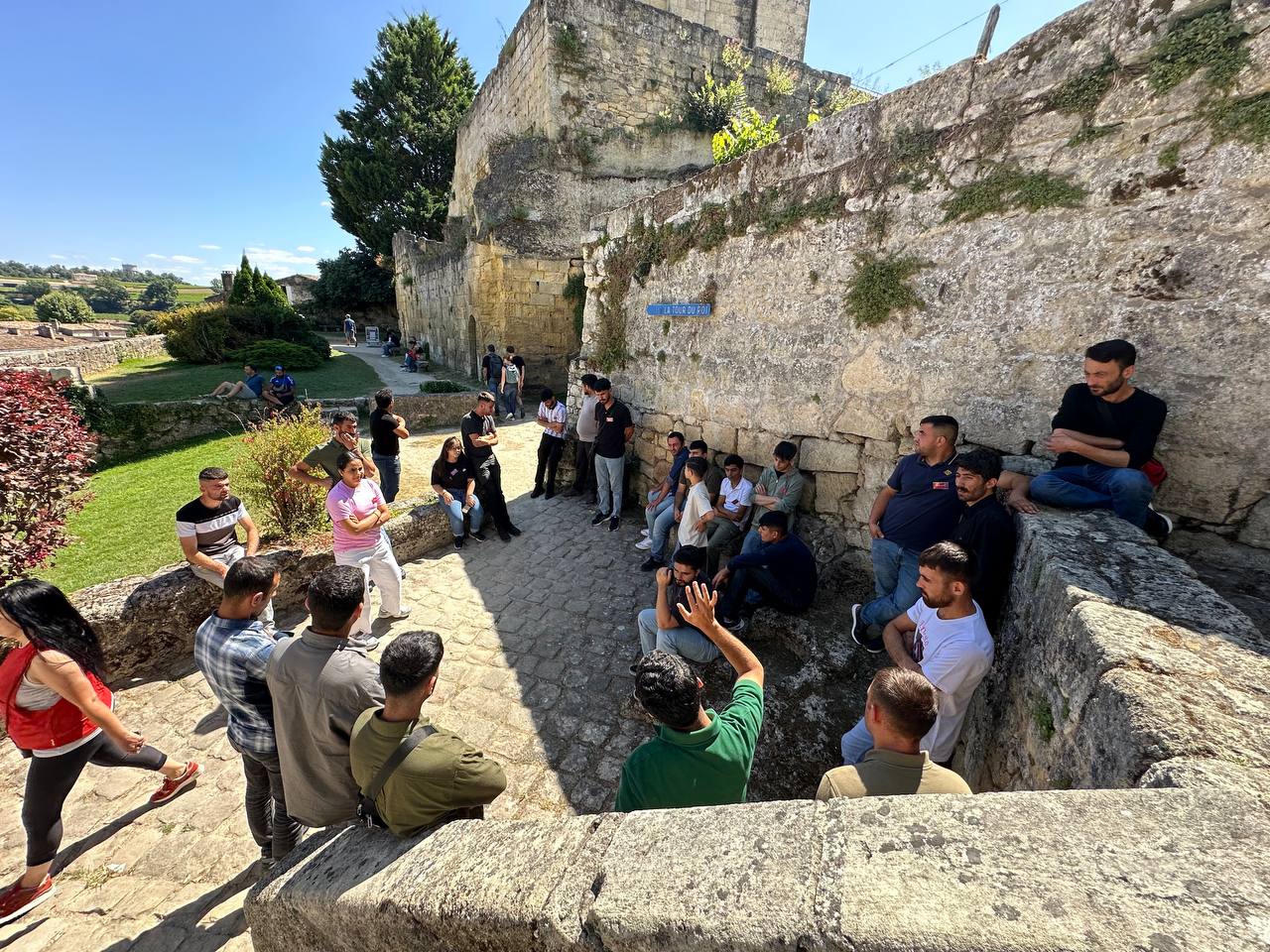 Öğleden sonra tura kaldıkları yere devam eden gençler, saat 13:30 da Unesco dünya mirası listesinde olan tarihi Saint Emilion şehrinde gezi yaptı. Akşam saat 15.30’a kadar burada tarihi eserler ve önemli alanların tanıtımı yapıldı. Ardından yarım saatlik mola verildi.