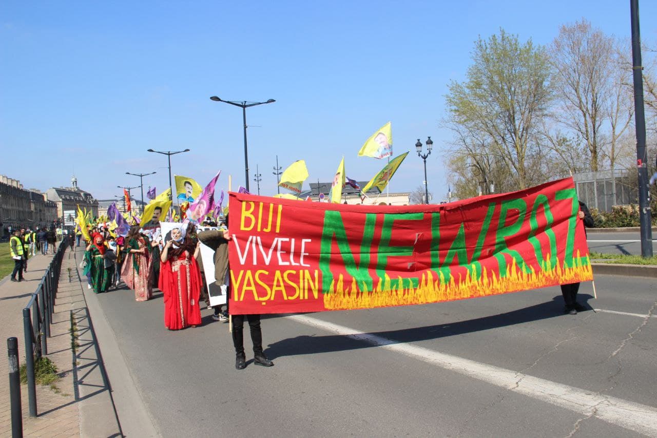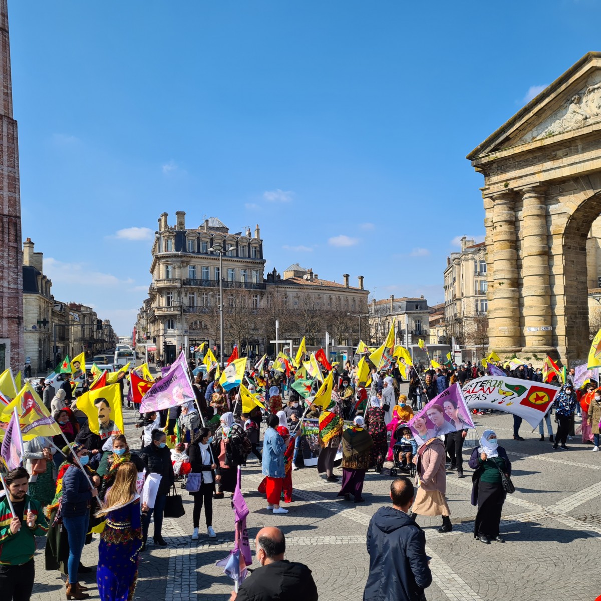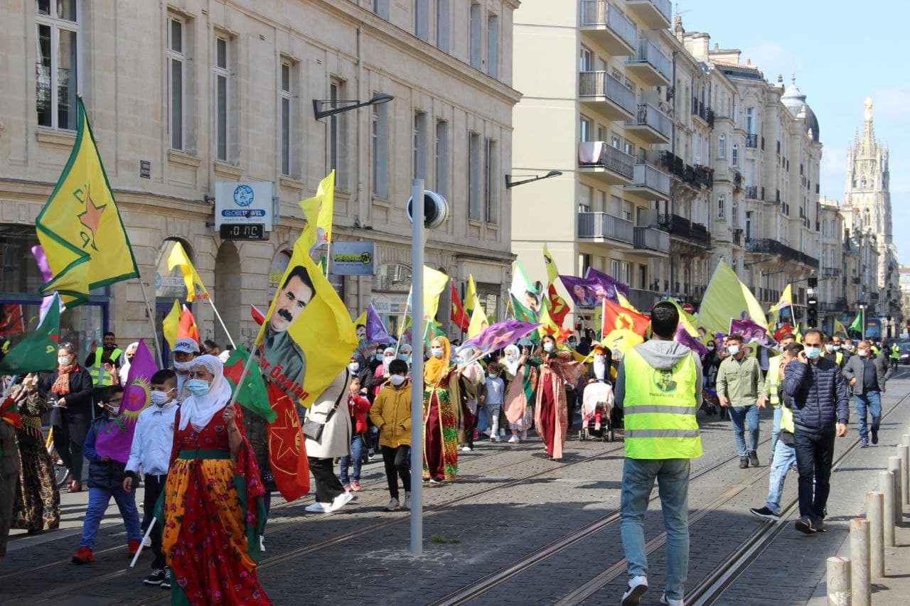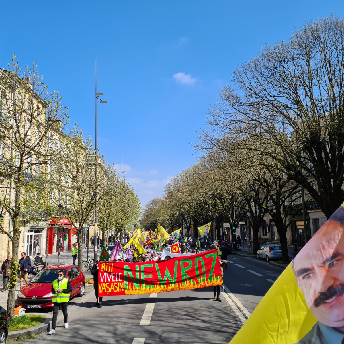BORDEAUX – Tevgera Ciwanên Şoreşger’in çağrısı ile Place de la Bourse meydanında Kürdistanlıların toplanması ile saat 12’de Newroz yürüyüşü başladı.