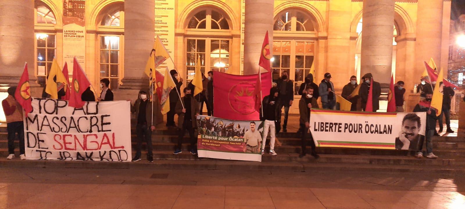 BORDEAUX – Halklar Önderi Abdullah Öcalan’ın fiziki özgürlüğü hedefiyle düzenlenen eylem akşam saatlerinde Bordeaux’da bulunan Hôtel de Ville önünde bildiri okunması ile başladı. Gençler, okudukları bildiride Önder Öcalan üzerinde sürdürülen sistematik işkence ve tecride dair bilgiler verirken, Şengal’e dair KDP-Irak anlaşması ve Şengal halkı için ifade eden anlamı belirttiler.