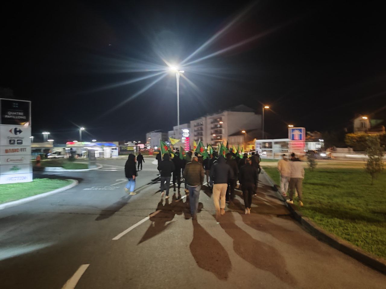 Cenon meydanında YPG ve YPJ bayrakları ile yürüyen gençler ve Kürdistanlılar, sık sık “Bijî Serok APO”, “Bijî Berxwedana Rojava” sloganları attı.