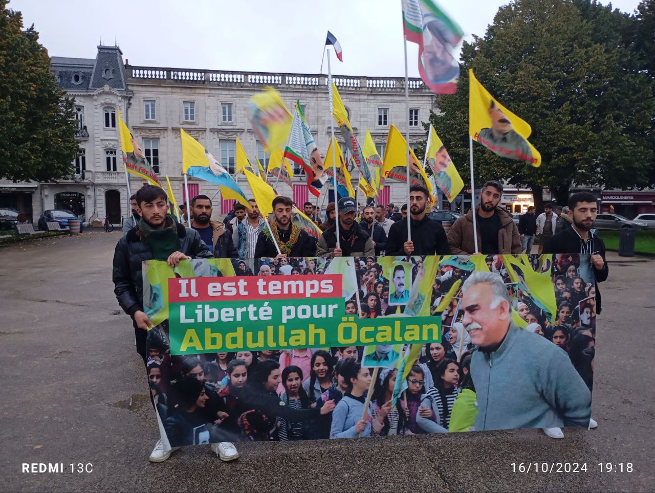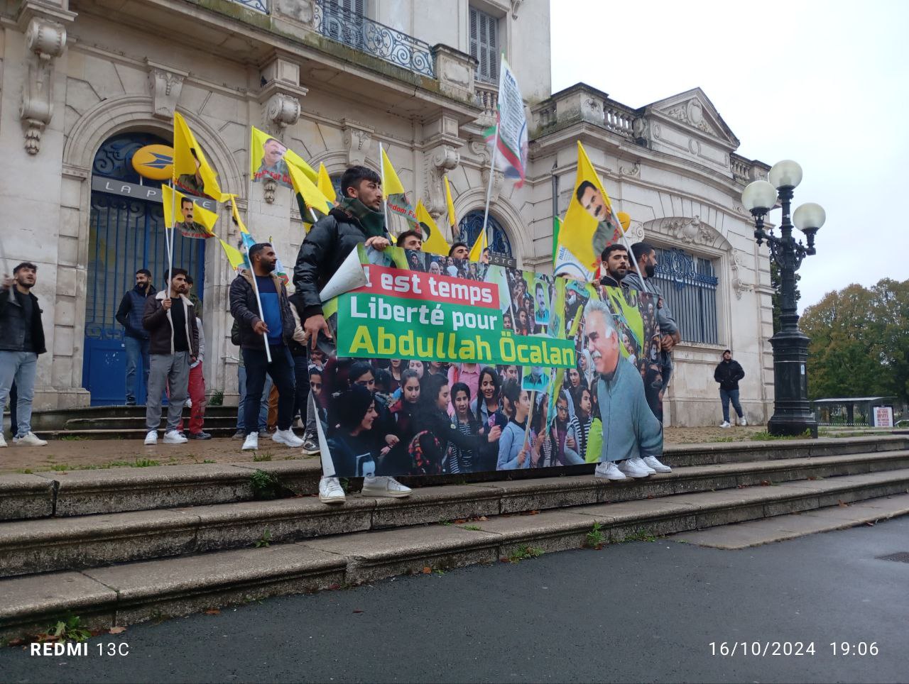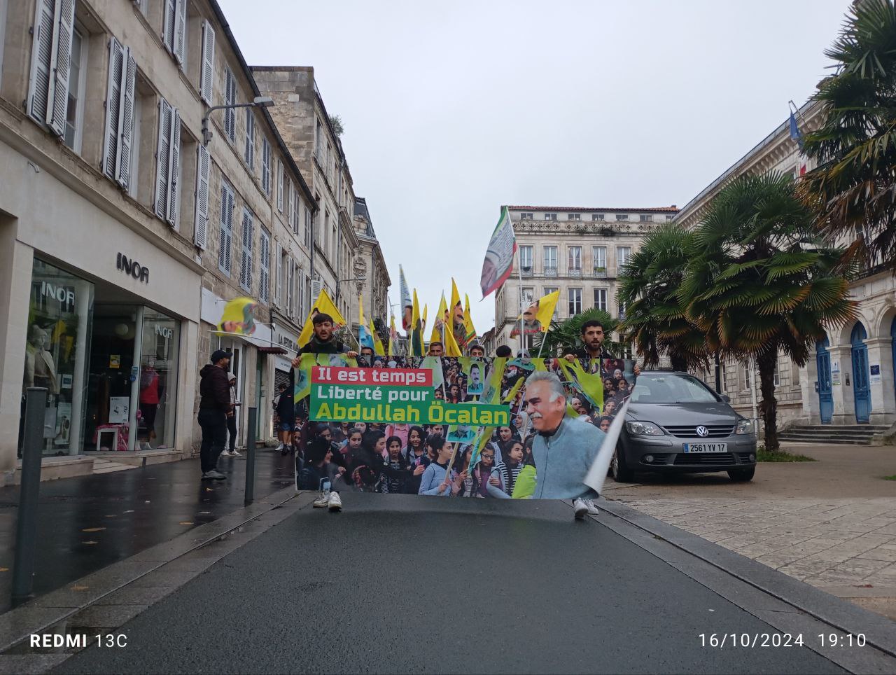 TCŞ öncülüğünde Rochefort Postanesi önünde toplanan kitle, sık sık “Bijî Serok APO” sloganlarıyla yürüyüşlerini Rochefort belediyesi önünde sonlandırdı.