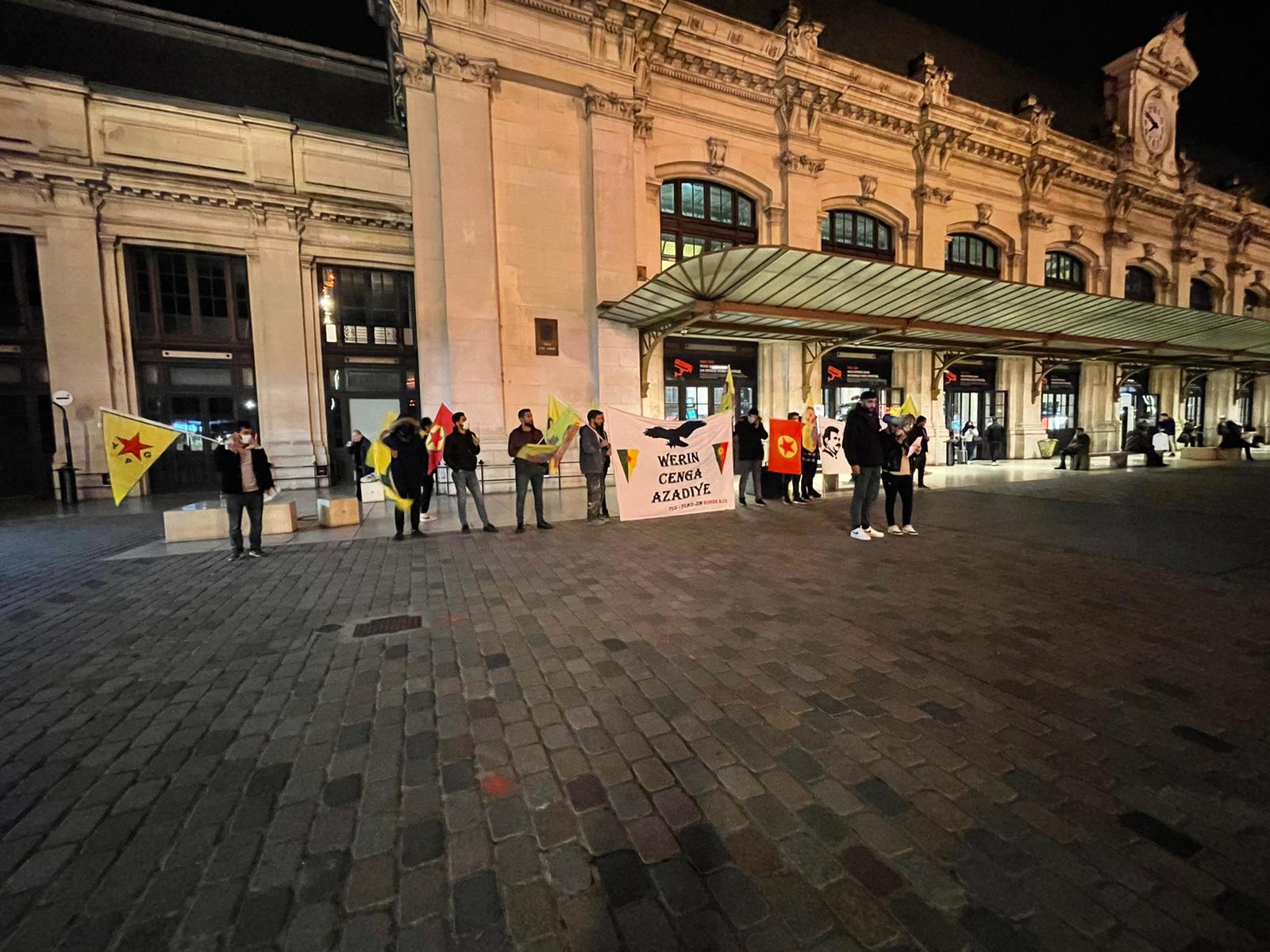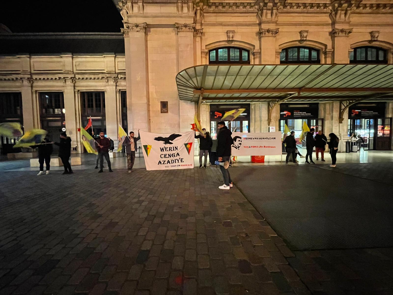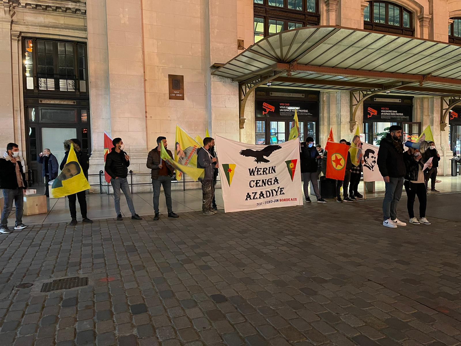 BORDEAUX – Akşam saatlerinde Bordeaux Jeans Gare binası önünde bir araya gelen TCŞ (Tevgera Ciwanên Şoreşger) ve TekoJIN (Jinen Ciwan ên Têkoşer) aktivistleri öncülüğünde, faşist TC’nin işgal ve soykırım saldırılarına karşı bir miting gerçekleştirildi.
